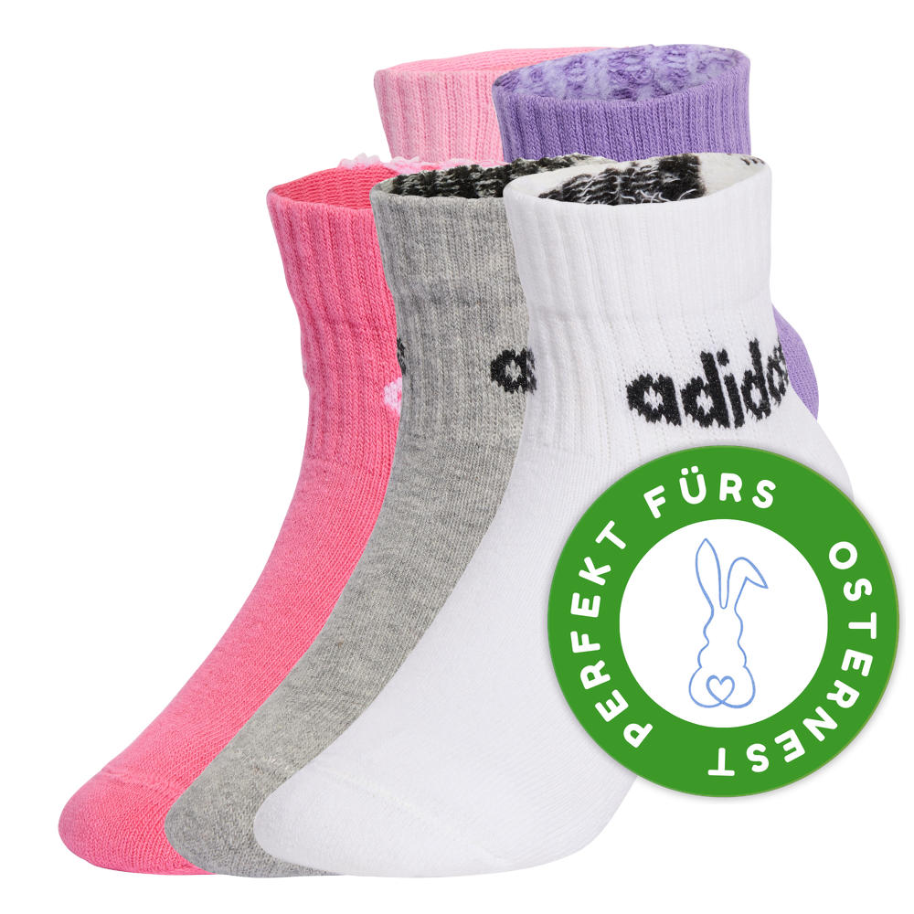 adidas Kids Linear Ankle, Kinder Quarter Socken, 5 Paar, pink