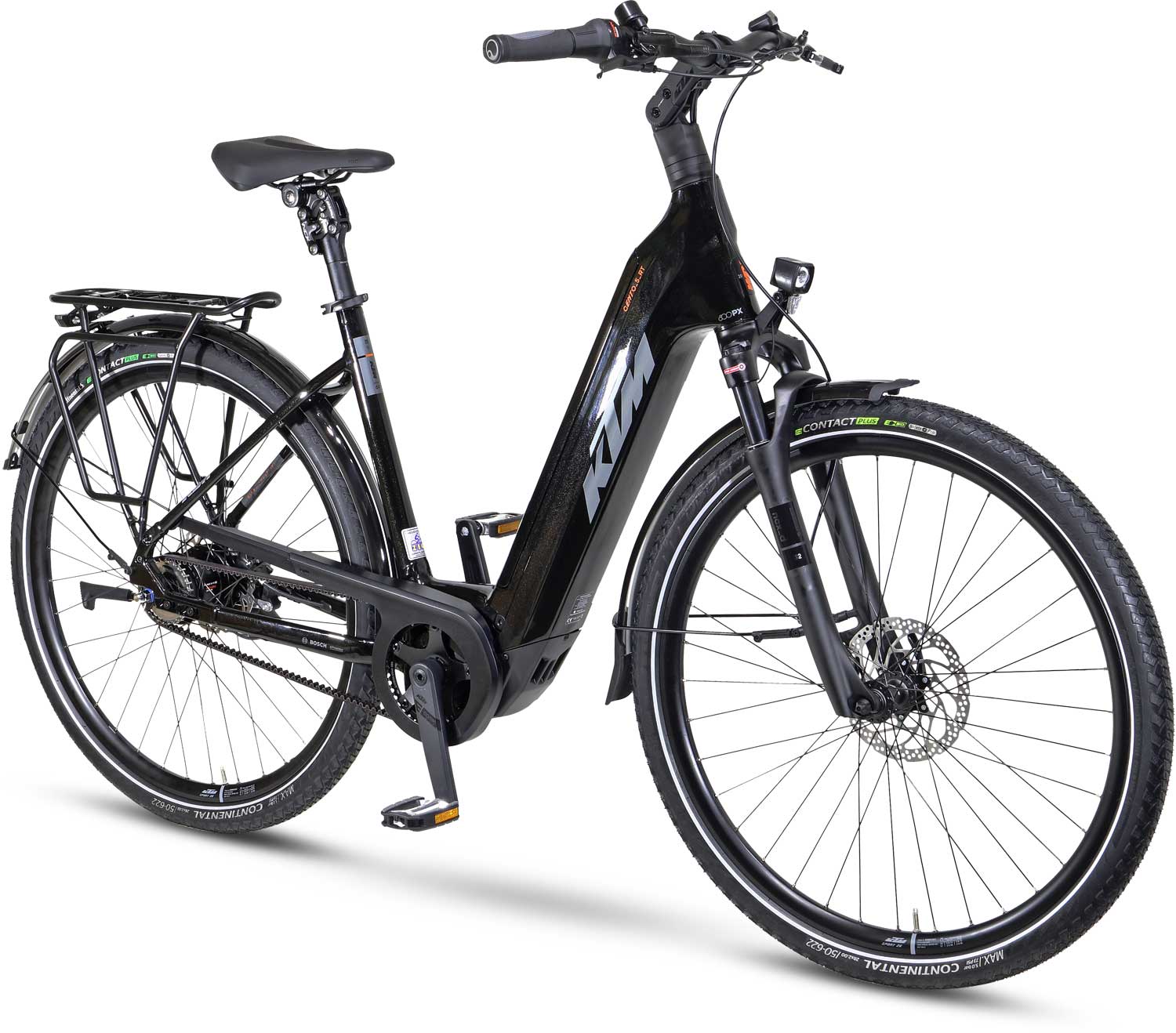 Der wartungsarme Gates Carbon Drive Riemenantrieb läuft leise und sauber. Die Shimano Nexus 5-Gang Nabenschaltung ist einfach zu bedienen und auch im Stand schaltbar. Für Komfort sorgen Federgabel und gefederte Sattelstütze. Hydraulische Scheibenbremsen in Kombination mit Rücktrittbremse gewährleisten sichere Verzögerung. E-Bike-geeignete Continental Reifen bieten Grip und Pannenschutz.