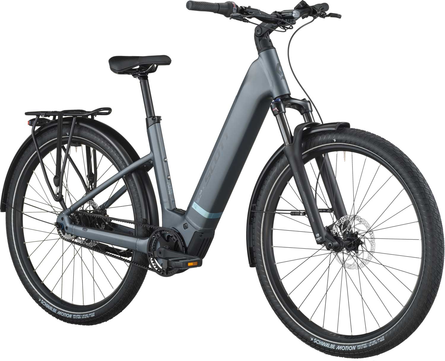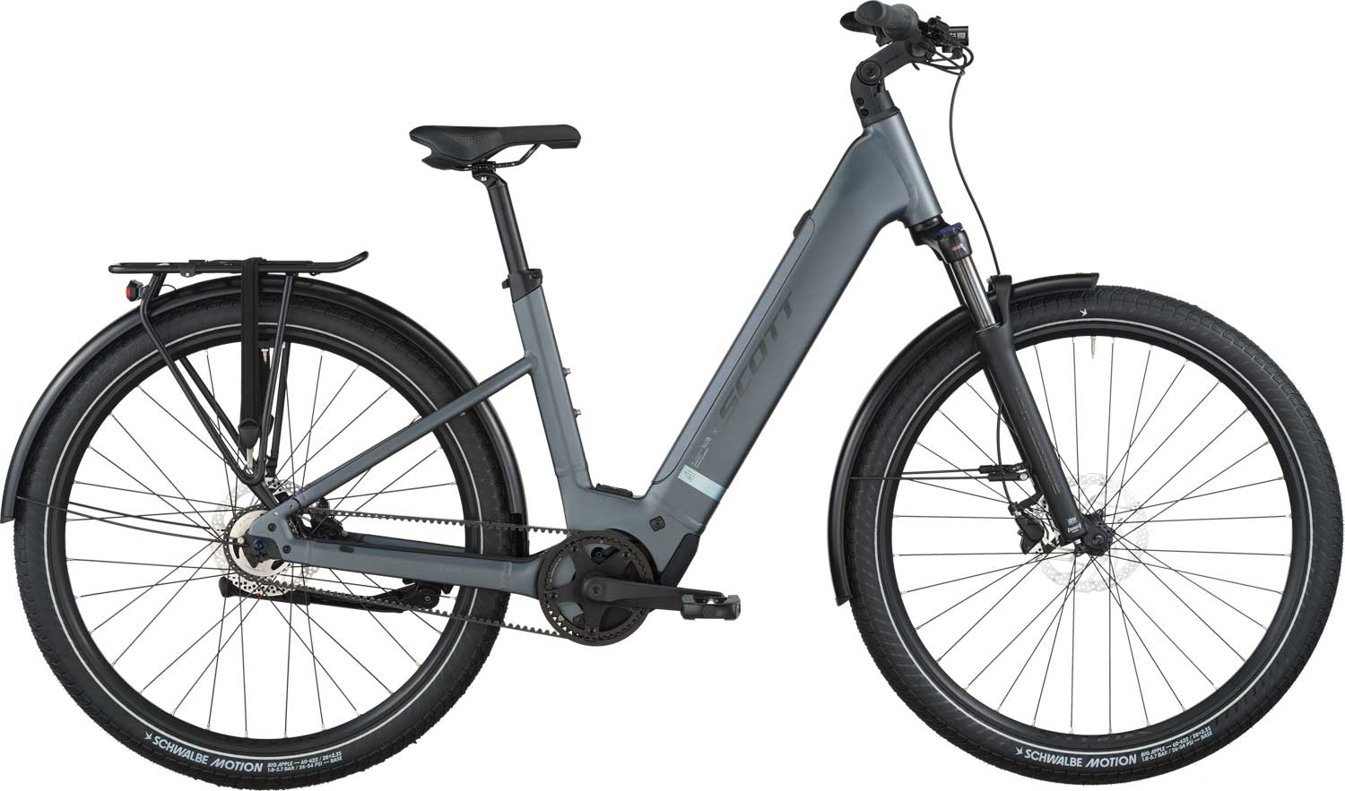 Die bequeme Sitzhaltung machen dieses Scott E-Bike zu einem beliebten Touren E-Bike und der kräftige Motor sorgt für gute Unterstützung.