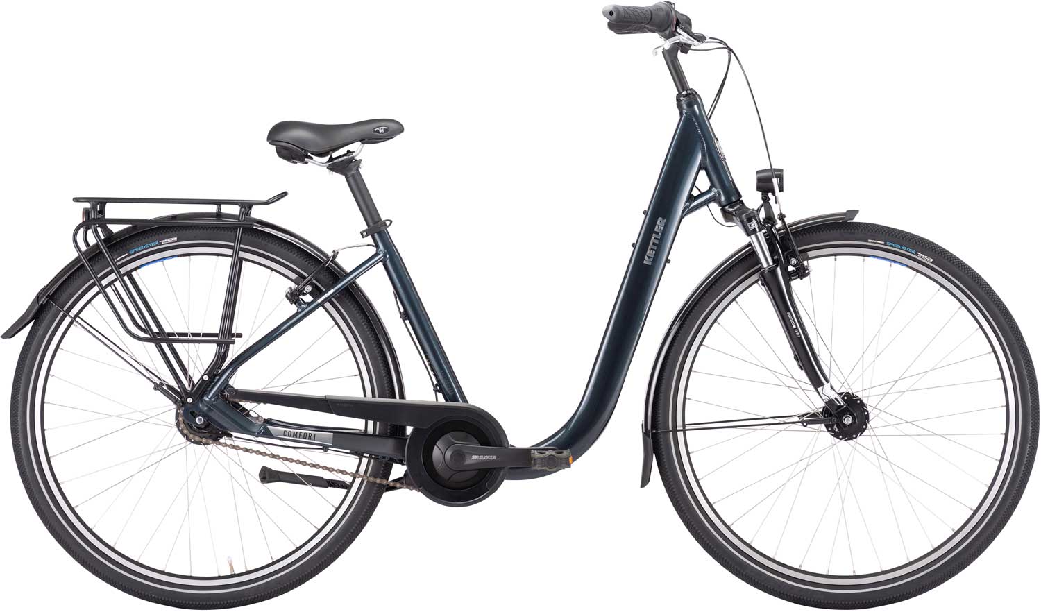 Das Kettler Comfort RT ist ein 28 Zoll Damenfahrrad für befestigte und unbefestigte Radwege. Die Sitzhaltung ist komfortabel und lässt sich individuell durch den verstellbaren Lenkervorbau anpassen. Die 8-Gang Shimano Nabenschaltung mit Rücktrittbremse bietet für jede Fahrsituation die richtige Übersetzung. Die kräftigen Felgenbremsen geben Sicherheit und Kontrolle.