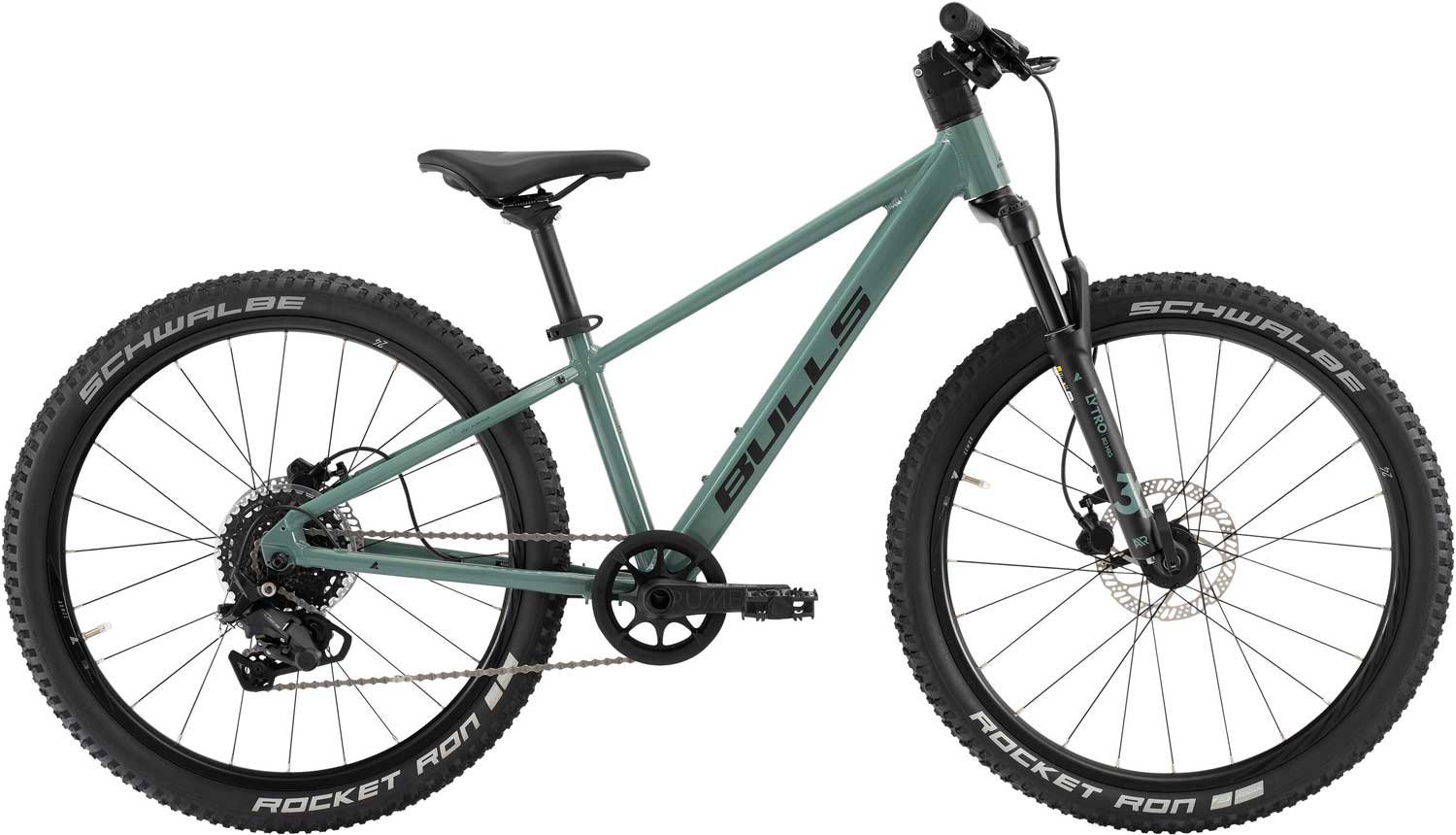 Die 9 Gang Kettenschaltung des Bulls Tokee Disc 24 wird mit einem Schalthebel geschalten. Die hydraulischen Scheibenbremsen sorgen für ein gut dosierbares Bremsgefühl.
