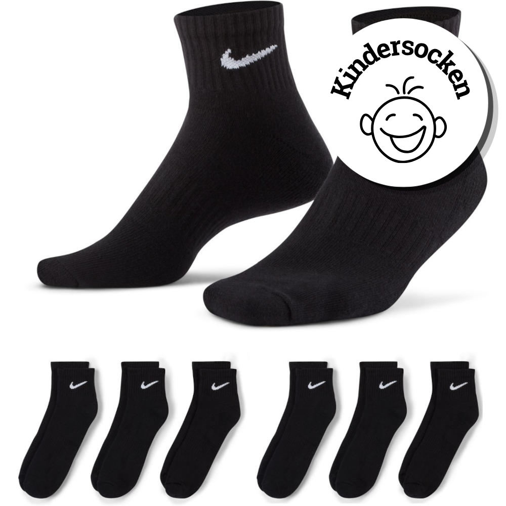 Nike Everyday Cotton Cushioned Ankle, Kinder Quarter Socken, 6 Paar, SX6912, schwarz