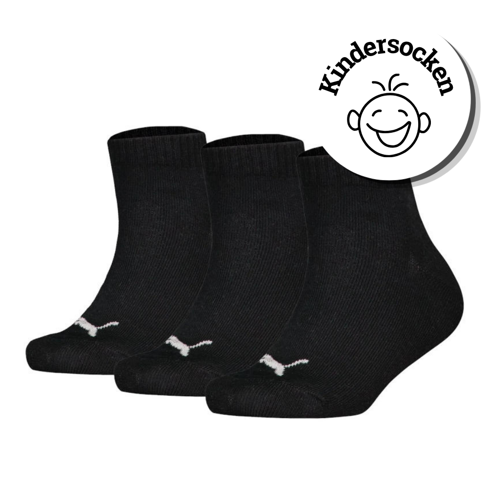 Puma Kids Plain Quarter, Kinder Quarter Socken, 3 Paar, schwarz