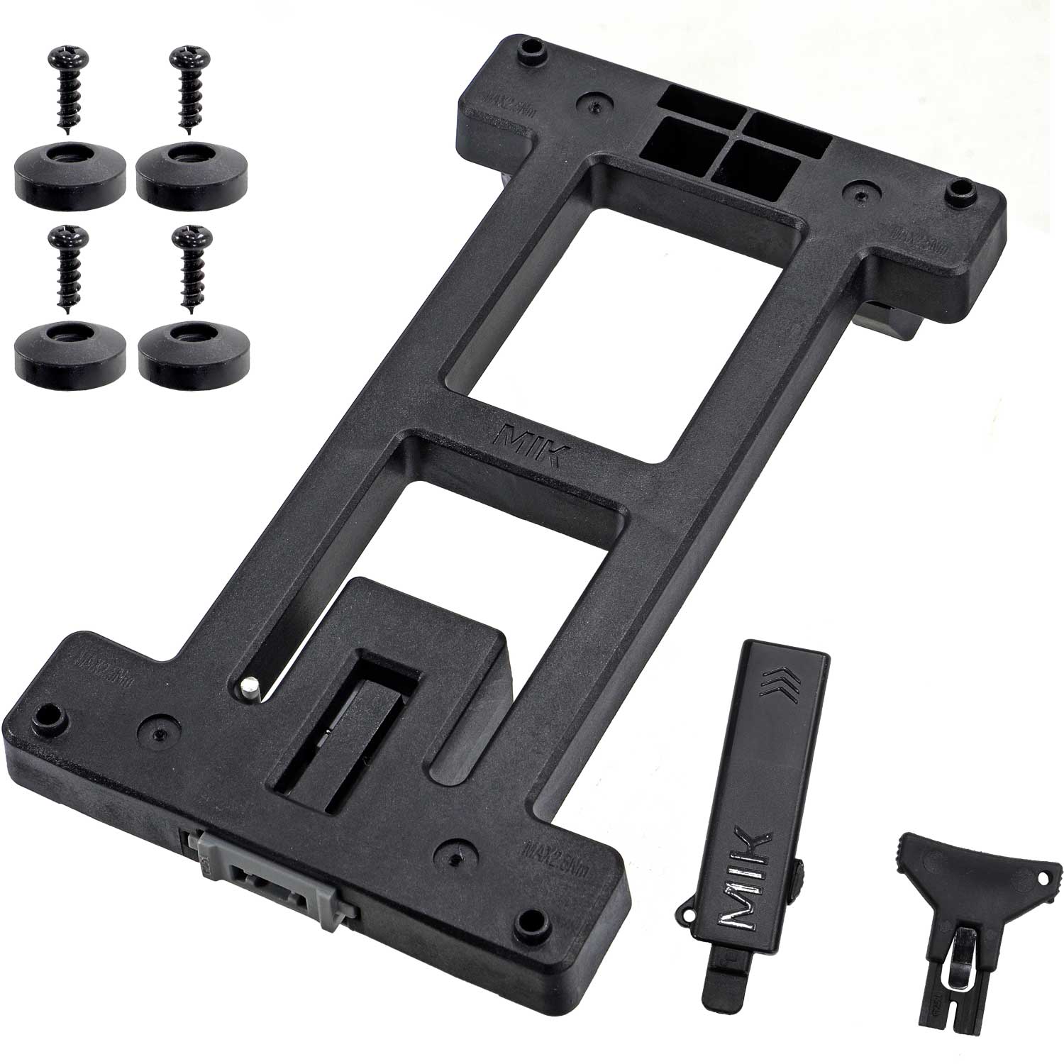 Die vorhandene Racktime Adapterplatte kann einfach abgeschraubt und mit der MIK Adapterplatte 2.0 ersetzt werden. Die Abstände der Löcher sind identisch.
