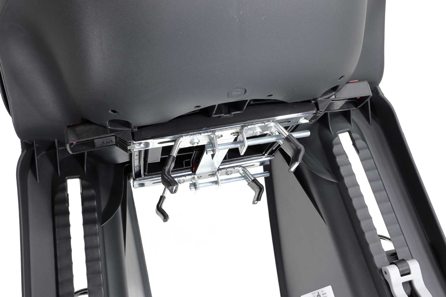 Der Kindersitz wird am Gepäckträger befestigt. Die Montage ist auch bei Gepäckträgerakku möglich. Der Sitz sollte nicht an vollgefederten Rahmen montiert werden.