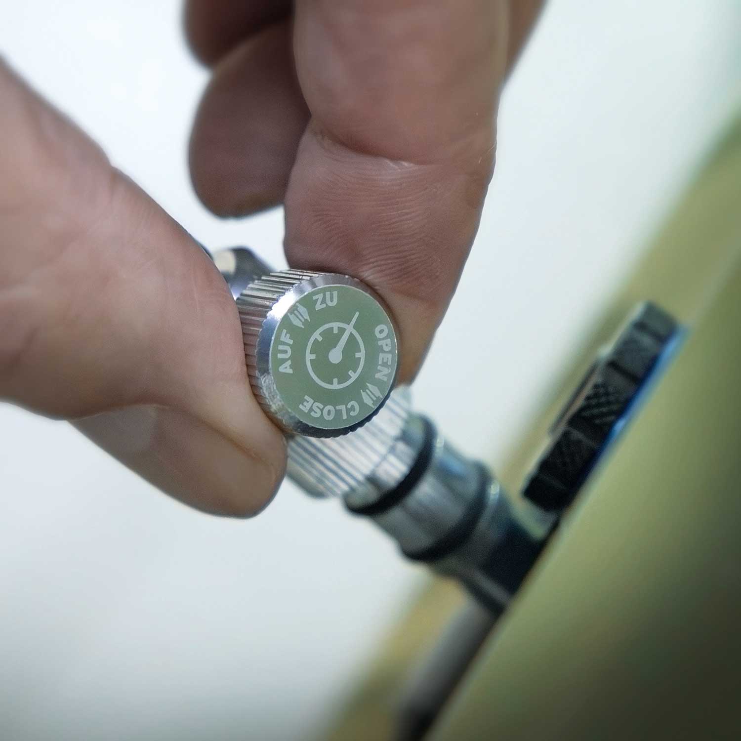 Der lange, gummierte Stahlflex-Schlauch sorgt für maximale Bewegungsfreiheit, und der 2-Stufen-AV-Anschluss verhindert zuverlässig Druckverluste. Robuste Materialien wie das rote Metallrohr und der stabile Alugussfuß bieten sicheren Stand – Made in Germany. Dank Klappfüßen und abnehmbarem Holzgriff lässt sich die Pumpe zudem platzsparend verstauen.