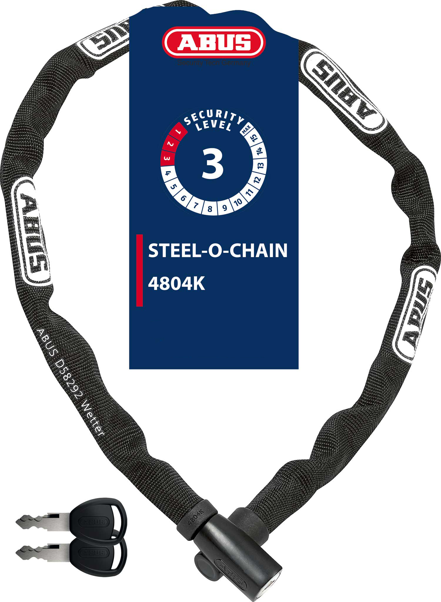 Das Abus Steel-O-Chain™ 4804K/75 ist ein Kettenschloss, welches über einen hochwertigen Schließzylinder verfügt, der für einen hohen Schutz vor Manipulationen sorgt. Die 4 mm starken Stäbe sind aus gehärtetem Stahl. Der Schlosskörper ist ebenfalls mit einem farblich abgestimmten Textilüberzug umhüllt und schützt den Lack vor Schäden. Das Schloss verfügt über eine Anschließlänge von 75 cm. Das Abus Steel-O-Chain™ 4804K/75 ist besonders für Jugendliche geeignet. Durch das geringere Grundgewicht und die Flexibilität kann das Schloss bequem zusammen geknautscht und in einer Tasche verstaut werden.