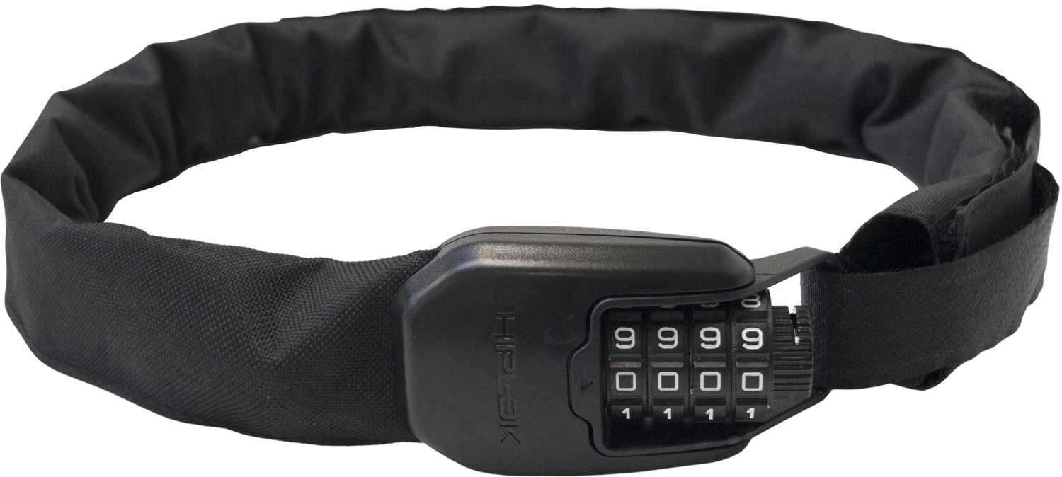 Das Hiplok Spin ist ein tragbares Kettenschloss für die Sicherung von Fahrrädern und E-Bikes. Durch die Bauweise und das niedrige Gewicht kann dass Kettenschloss einfach um die Hüfte getragen werden. Das Schloss besteht aus 6 mm starken Gliedern aus gehärtetem Stahl und ist mit einer weichen Gewebe umschlossen. Der 4-stellige Zahlencode macht die Nutzung im Alltag komfortabel und kann individuell programmiert werden.