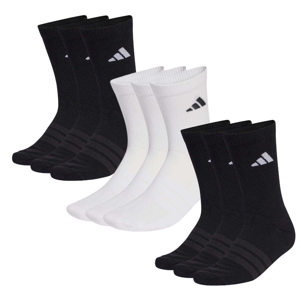 9 Paar adidas Cushioned Crew Sportsocken, schwarz & weiß
