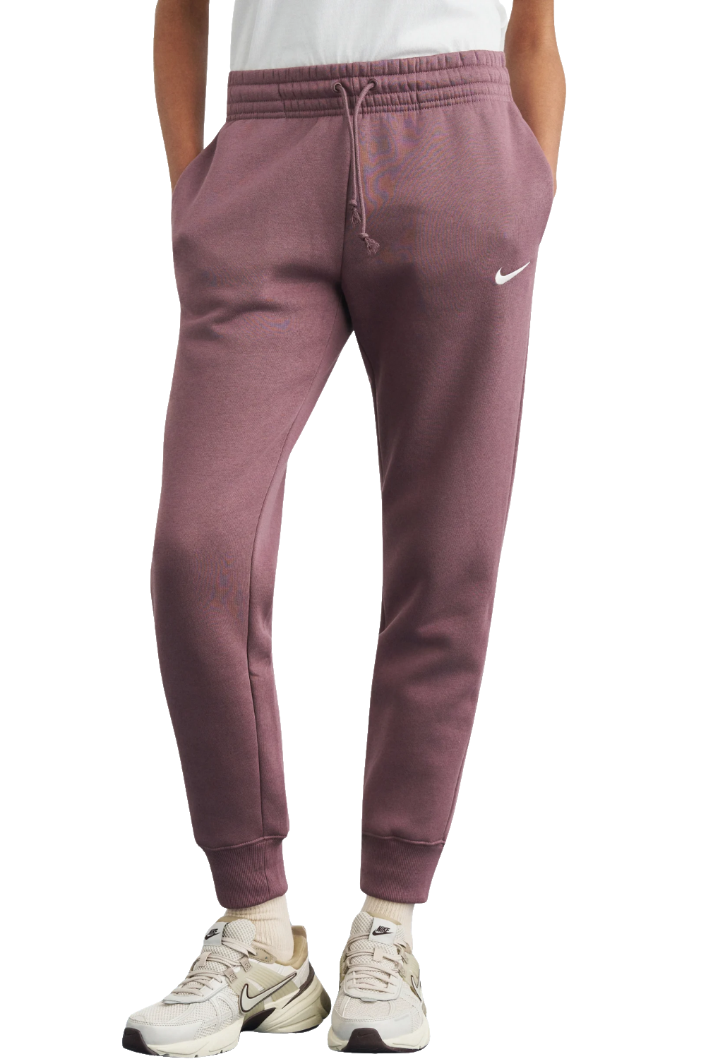 Die Nike "W NSW CHLL FT JGGR PANT" Damen Jogginghose bringt Ruhe in deinen Look, wenn du bequem sitzen willst, ohne dass es nach zu sportlich oder überladen aussieht. Der Materialmix aus Baumwolle und Polyester fühlt sich angenehm an, während die reguläre Passform an Hüfte und Oberschenkeln locker sitzt und zum Knöchel schmaler zu läuft, so bleibt die Silhouette aufgeräumt. Der weitenregulierbare elastische Bund mit innenliegendem Kordelzug sitzt hoch für bequemen Sitz und eine vorteilhafte Passform, dazu wirkt der breite Bund mit dreifacher Steppnaht sauber verarbeitet und stabil am Körper. Seitliche Eingriffstaschen halten das Nötigste griffbereit, ohne den Look zu unterbrechen. Weil auf auffällige Drucke oder Seitenstreifen verzichtet wird, bleibt die Hose sehr alltagstauglich und lässt sich leicht kombinieren, egal ob du es schlicht oder sportlich hältst. Breite, elastische Rippstrickbündchen am Beinabschluss sorgen dafür, dass die Hosenbeine ordentlich enden und nicht wandern. In den Warenkorb und hol dir den cleanen Jogger-Look für jeden Tag.