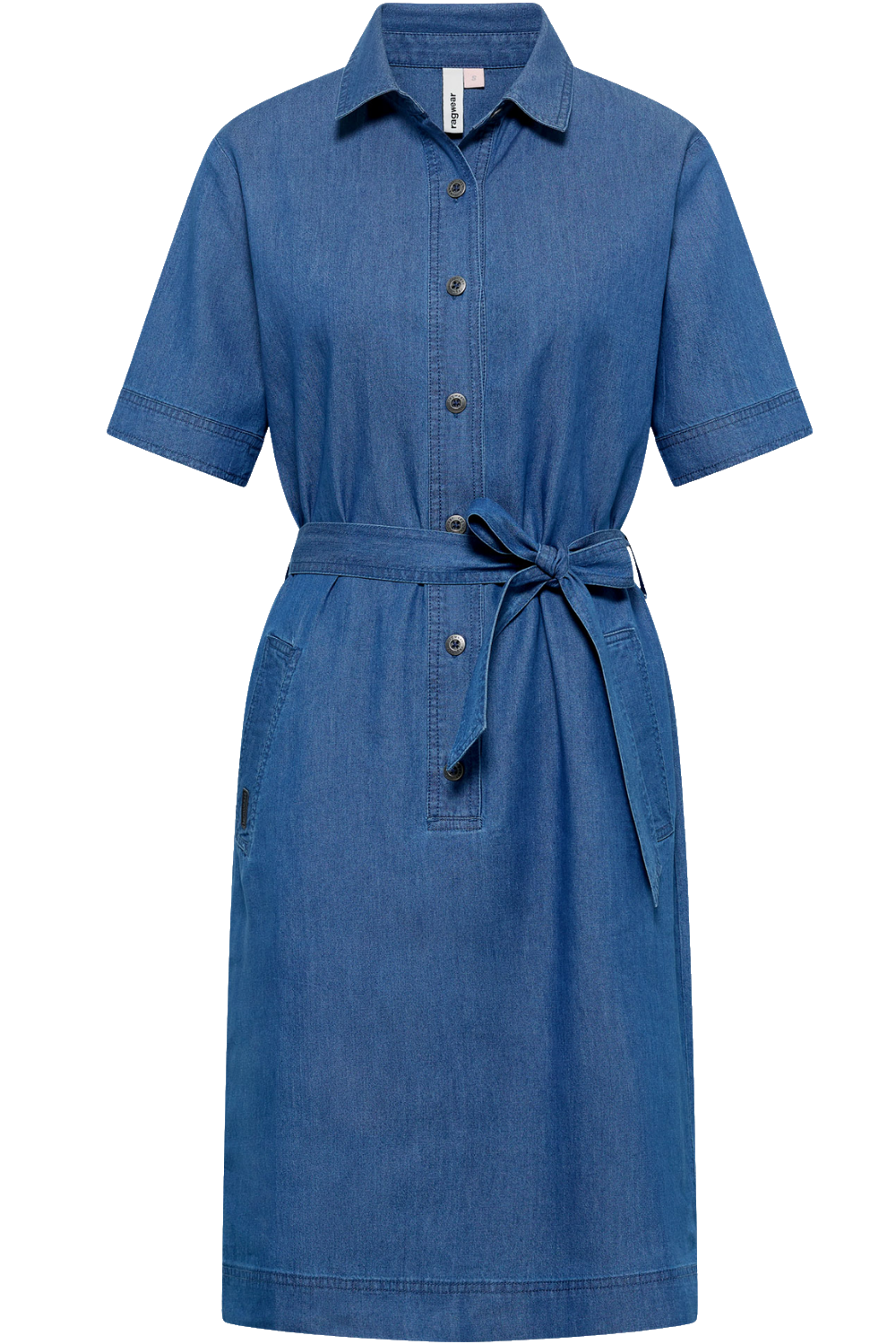 Das Ragwear "ROZYNA DENIM" ist ein unkompliziertes vegane Damen Blusenkleid im authentischen Denim-Look. Das gewebte Material aus Baumwolle und Viskose ist vorgewaschen. Diese Konstruktion sorgt dafür, dass sich das Kleid angenehm weich anfühlt und gleichzeitig eine lässige Optik bietet. Die durchgehende Knopfleiste, der klassische Hemdkragen und die kurzen Ärmel unterstreichen konsequent den zeitlosen Charakter des Modells.