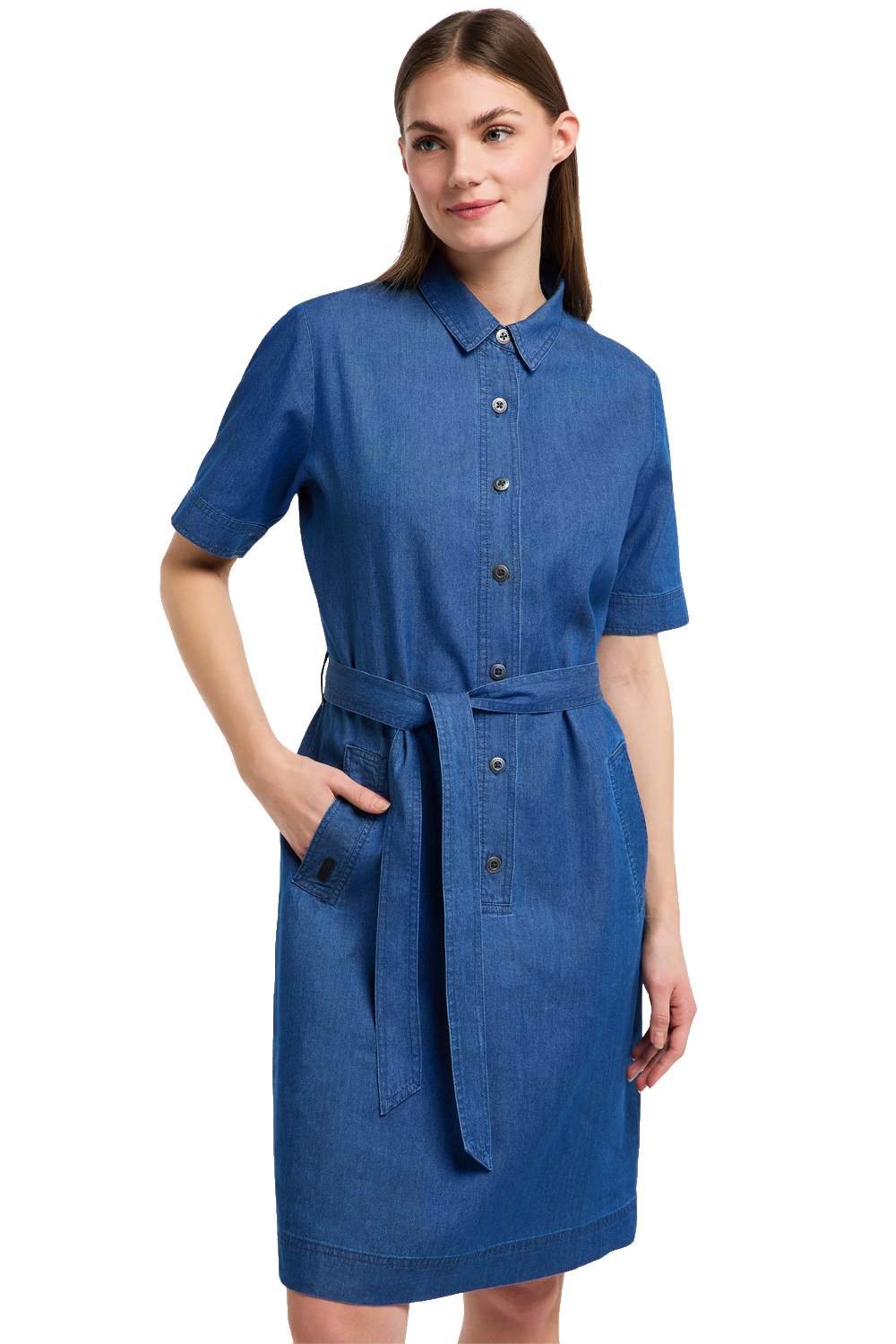Der knielange, gerade Schnitt ermöglicht vielseitige Tragevarianten. Mit dem schmalen Stoffgürtel kannst du die Taille locker betonen oder das Kleid ganz entspannt gerade tragen. Für zusätzlichen Komfort im Alltag sorgen die seitlichen Eingriffstaschen. Dieses vegane Blusenkleid ist perfekt für den Alltag, das Büro oder die Freizeit geeignet. Erweitere deine Garderobe um diesen vielseitigen Allrounder und bestelle das knielange Blusenkleid direkt für deinen nächsten Tag im Büro.