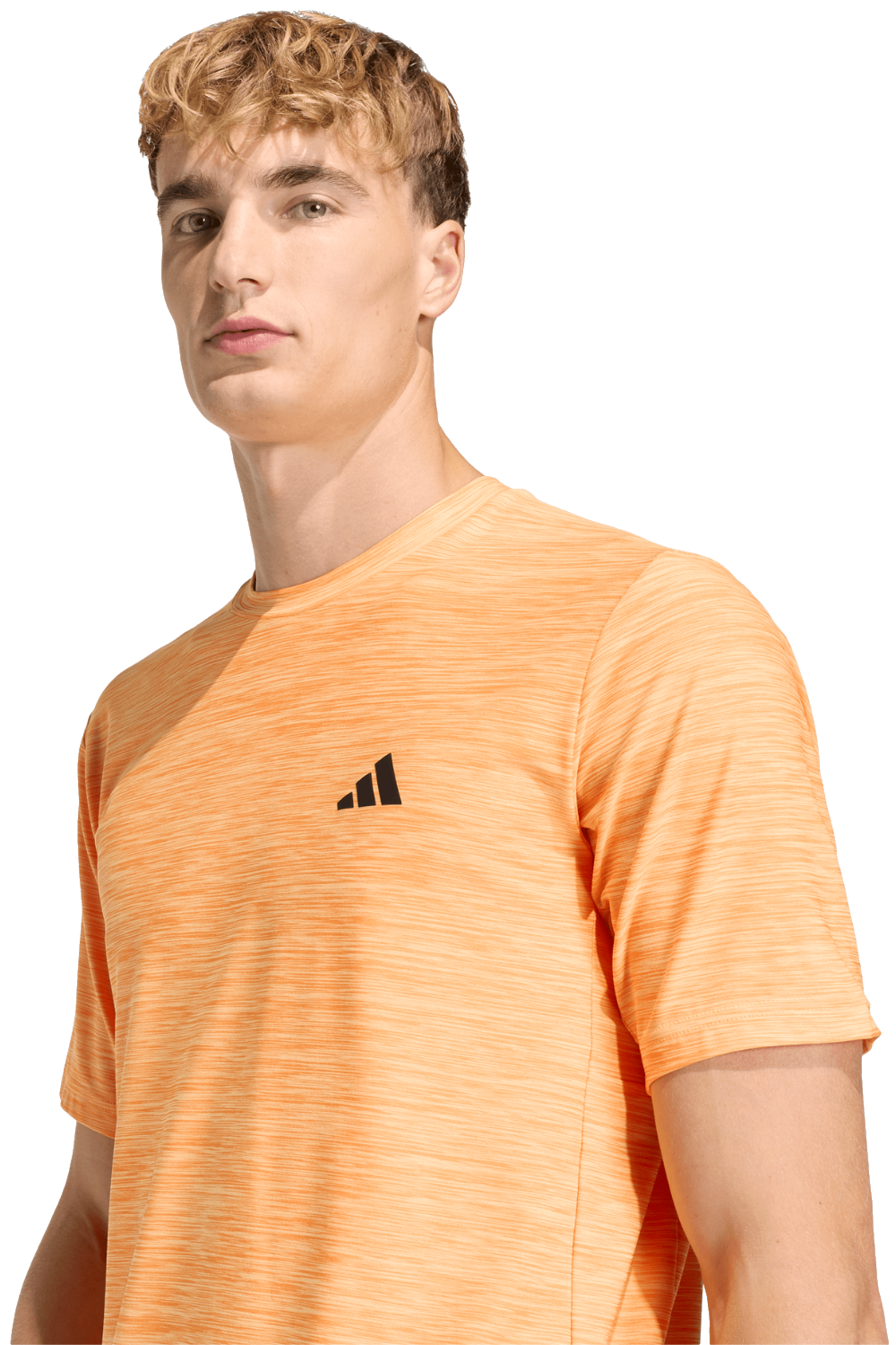 Adidas "WE FLEX T" Herren T-Shirt bringt dir genau das, was du im Training brauchst: ein leichtes Shirt, das kühl bleibt und trocken hält. Das Workout Essentials Flex T-Shirt aus weichem Single Jersey liegt angenehm auf der Haut, die reguläre Passform lässt volle Bewegungsfreiheit und der Rundhalsausschnitt trägt sich auch bei langen Einheiten komfortabel. Climacool führt Schweiß zuverlässig ab und nutzt schnell trocknende Fasern, damit du dich länger frisch fühlst. Die Kurzarmkonstruktion bringt Luft an die Haut, das Material bleibt leicht und formstabil. Subtiles adidas Branding liefert den sportlichen Look, der ins Gym passt und sich danach problemlos in den Alltag übernimmt. Im Vergleich zu klassischen Baumwollshirts klebt es weniger, trocknet schneller und hält das Tragegefühl ruhiger, wenn die Belastung steigt. Ob Kraftzirkel, Laufbahn, Mobility oder ein kurzer HIIT Block, dieses Shirt bleibt kühl, trocken und beweglich. Du startest ohne Ablenkung, bleibst fokussiert und beendest deine Einheit mit einem guten Gefühl. Einfach anziehen und loslegen.