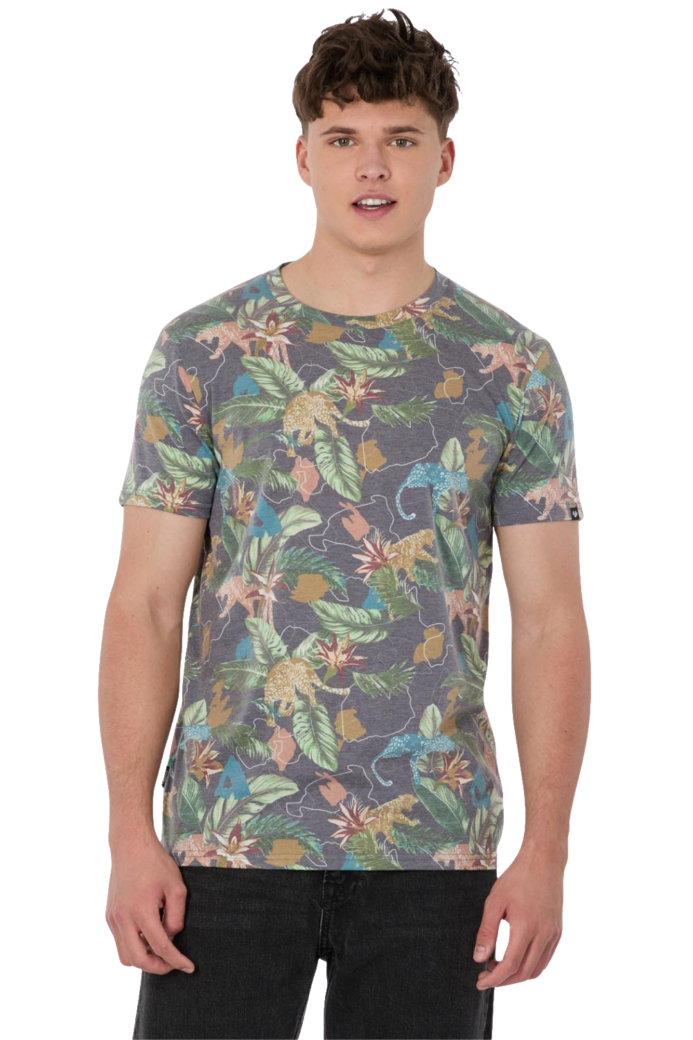 Der gerade Schnitt garantiert dir eine bequeme Passform, die durch den klassischen Rundhalsausschnitt harmonisch abgerundet wird. Optisch besticht das T-Shirt durch einen sommerlichen, auffälligen Allover-Print. Dadurch ist es das perfekte Teil, das du ganz unkompliziert mit Shorts oder deinen Lieblingsjeans kombinieren kannst. Bereite dich auf die warmen Monate vor und bestelle dieses luftige Oberteil direkt für dein nächstes Sonnenbad im Park.
