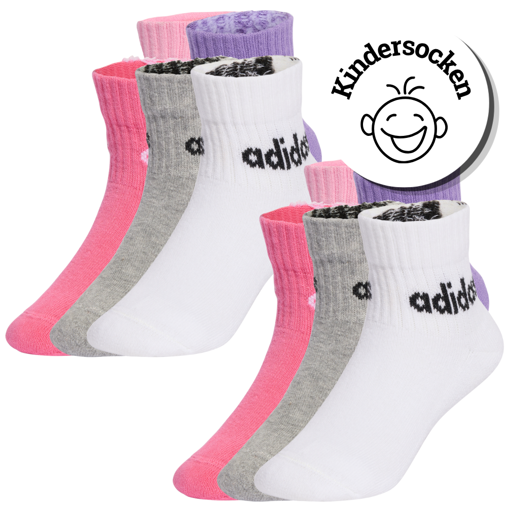 XXL-Paket adidas Kids Linear Ankle, Kinder Quarter Socken, 10 Paar, pink
