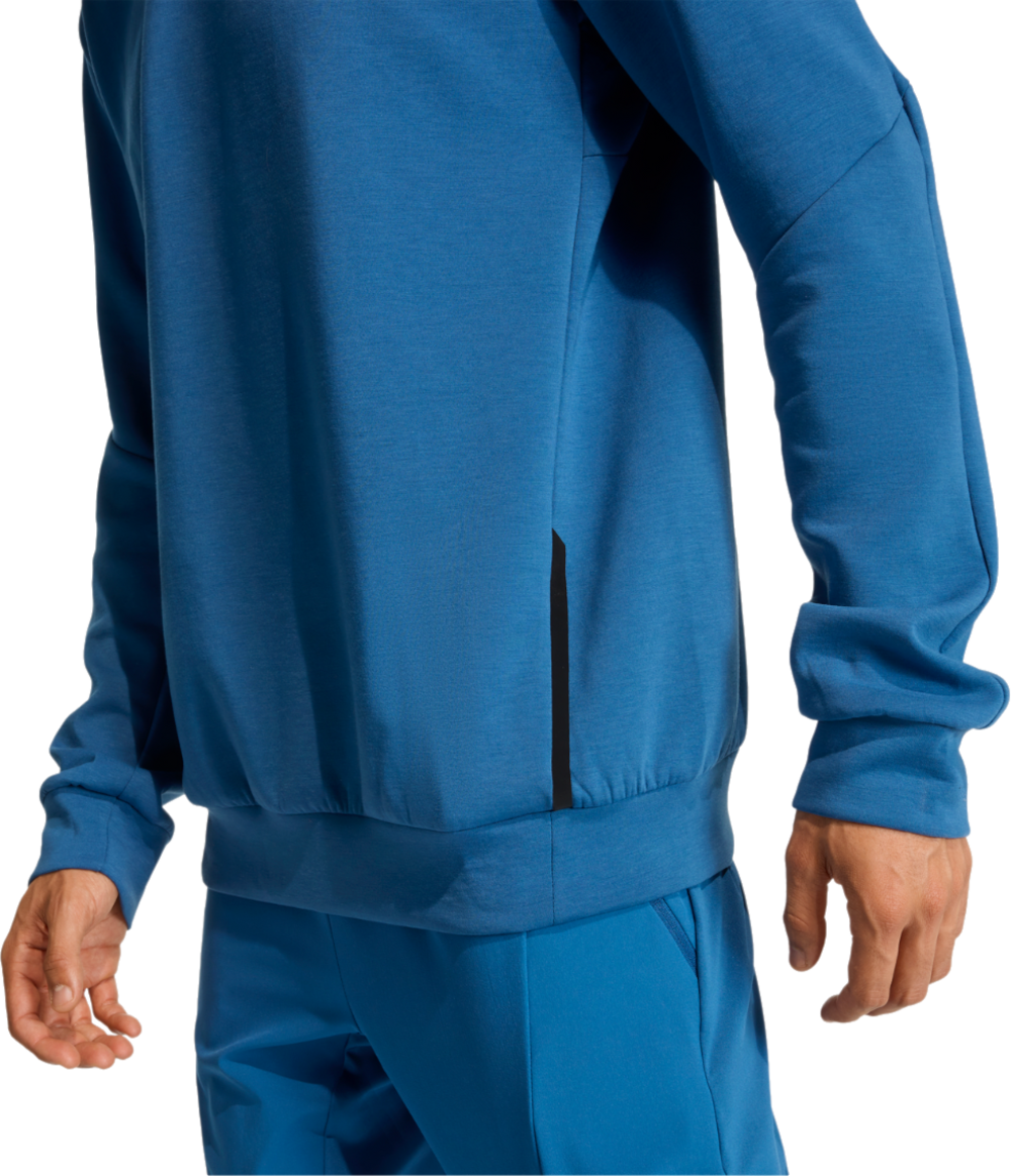 Adidas "D4T CREW SWEATS" Herren Sweatshirt ist für Tage gemacht, an denen du dich beim Training frei bewegen willst und danach nahtlos in den Alltag startest. Das angenehm weiche Material liegt ruhig auf der Haut, der reguläre Schnitt lässt dir Platz für jede Wiederholung und der Rundhalsausschnitt trägt sich selbstverständlich. Du konzentrierst dich auf Tempo und Technik, das Sweatshirt hält dir den Rücken frei. Wenn es intensiver wird, spielt AEROREADY seine Stärken aus. Die feuchtigkeitsableitende Technologie transportiert Schweiß weg von der Haut, damit du dich länger trocken und fokussiert fühlst. Gerippte Bündchen und Saum sorgen dafür, dass alles sitzt, ohne einzuengen. Das schlanke, sportliche Design wirkt aufgeräumt und funktioniert im Gym genauso wie auf dem Heimweg oder beim entspannten Abend mit Freunden. Im Vergleich zu klassischen Baumwoll-Sweats trocknet dieses Modell schneller, bleibt formstabil und fühlt sich auch nach mehreren Sätzen angenehm an. Reißverschlusstaschen brauchst du hier nicht, weil es um klare Einfachheit geht: anziehen, warm werden, durchziehen. Jetzt entdecken und dein Training mit gutem Gefühl beenden.
