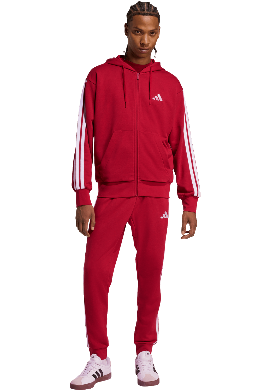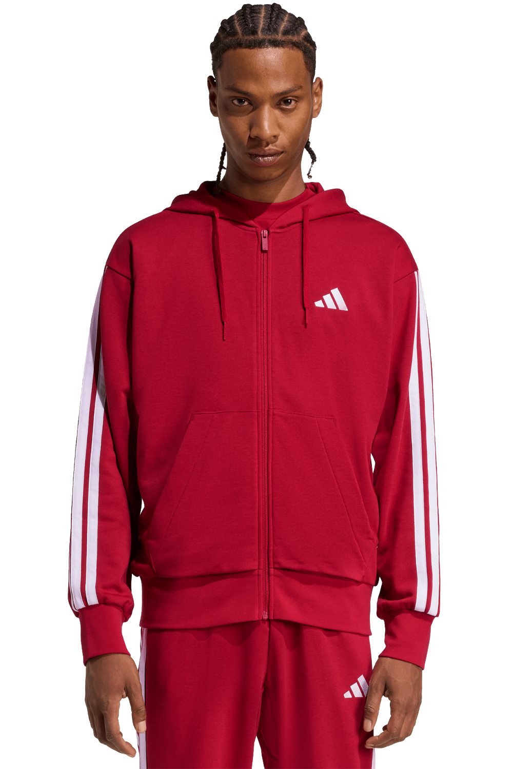 Adidas, Essentials 3-Streifen French Terry, Herren Trainingsjacke, rot/weiß