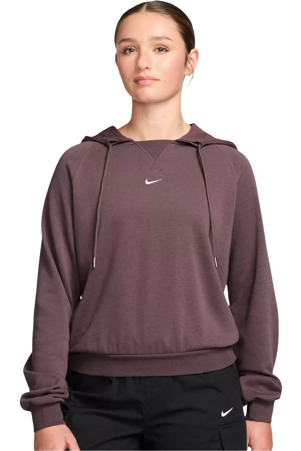 Der Nike "W NSW CHILL FT HOODY" Damen Hoodie trifft genau dann, wenn du es bequem willst, aber nicht schwerfällig wirken möchtest und dein Look trotzdem sportlich klar bleiben soll. Viele Hoodies sitzen im Alltag entweder zu eng an den Schultern oder fallen zu gerade, sodass Bewegung und Silhouette nicht zusammenpassen. Hier sorgt die lockere Passform für entspannte Weite, während die Raglanärmel dir optimale Bewegungsfreiheit bei allen Aktivitäten geben. Der Materialmix aus Baumwolle und Polyester fühlt sich angenehm an und bleibt alltagstauglich, wenn du den Hoodie schnell überziehen und einfach weitermachen willst. Die weitenregulierbare Kapuze mit integriertem Kordelzug lässt sich unkompliziert anpassen, ohne den cleanen Charakter zu verlieren. Ein starker Style-Punkt ist der geraffte Übergang zum unteren Bund: Der Stoff fällt locker über das Bündchen und erzeugt einen leichten Blouson-Effekt, der das Outfit sofort lässiger wirken lässt. Breite Rippstrickbündchen an den Ärmelenden und am Saum sorgen für guten Sitz und verhindern, dass etwas verrutscht. Am besten für Alltag und Freizeit, wenn du einen lockeren Hoodie mit Bewegungsfreiheit und Blouson-Silhouette suchst. Kombiniere ihn mit weiteren Damen Hoodies oder Sportoberteilen für deinen Look. Jetzt sichern und nimm den lässigen Blouson-Look mit in deinen Alltag.