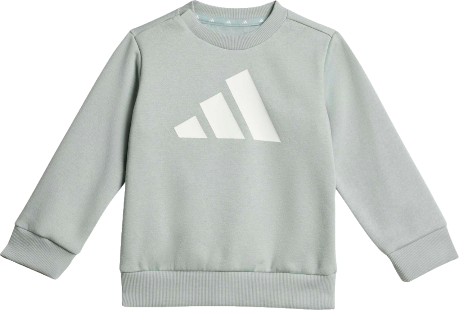Adidas "Essentials Kids Jogginghose" Kinder Trainingsanzug ist das perfekte Set für dein Baby oder Kleinkind, wenn es um Komfort und Bewegungsfreiheit beim Spielen geht. Dein Kind genießt durch den regulären Schnitt eine bequeme Passform, die dank elastischem Bund und Rippbündchen an den Ärmeln und Beinen immer sicher sitzt, ohne zu verrutschen. Das Material besteht aus einem weichen Mix mit 70 % Baumwolle und 30 % recyceltem Polyester, was das Outfit besonders gemütlich und hautfreundlich macht – ideal für Abenteuer jeder Art. Das Set setzt sich aus einem Pullover mit klassischem Rundhalsausschnitt und der passenden Hose zusammen, die sich dank des vielseitigen Designs auch prima einzeln kombinieren lassen. Optisch sorgt das große 3-Streifen Logo für einen sportlichen Look, der zu allem passt. Zudem tust du etwas Gutes für die Zukunft deines Kindes, denn dieses Produkt besteht zu mindestens 70 % aus einem Mix aus recycelten und erneuerbaren Materialien. Hol dir dieses süße und nachhaltige Outfit für deinen kleinen Schatz.