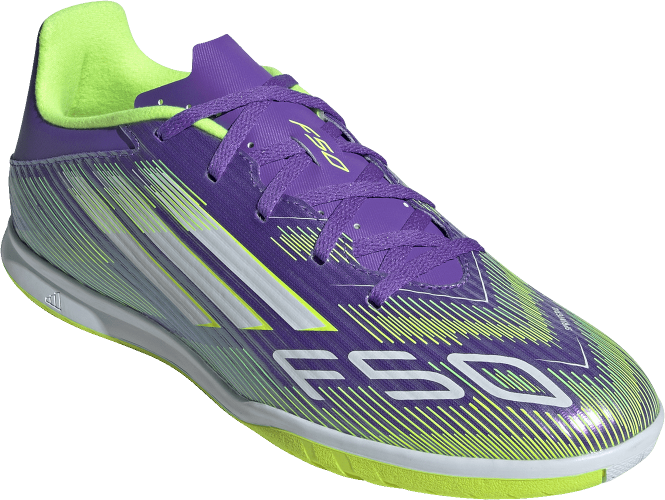 Der adidas "F50 CLUB IN" begleitet dich mit leichtem Gefühl und schnellem Feedback auf jedem Hallenboden. Die perforierte Zunge lässt Luft zirkulieren und hält den Fuß spürbar frischer. Das Fiberskin Obermaterial stabilisiert bei Sprints und Cuts, damit du bei jedem Kontakt Kontrolle behältst. Unten sorgt die abriebfeste Non Marking Gummiaußensohle für verlässlichen Grip auf flachen Indoor Courts. Der reguläre Fit mit Schnürverschluss sitzt sicher und bequem, das Textilfutter fühlt sich angenehm an. Reinschlüpfen, Tempo aufnehmen, Chancen nutzen. Jetzt Angebot sichern.
