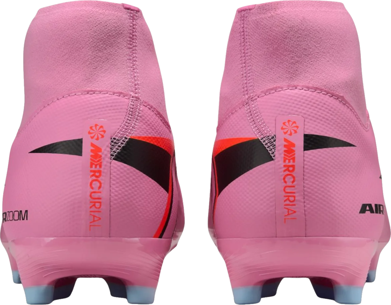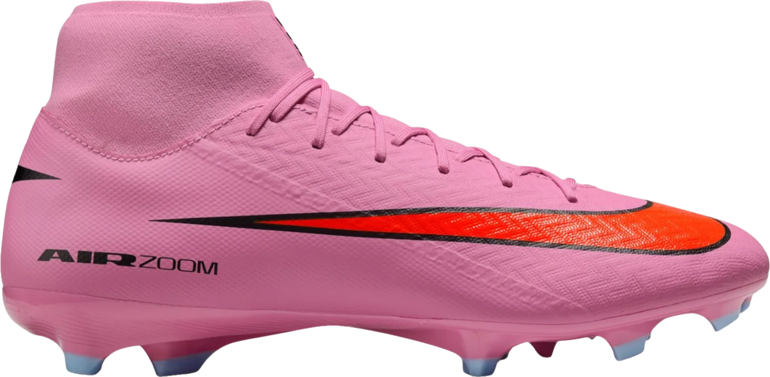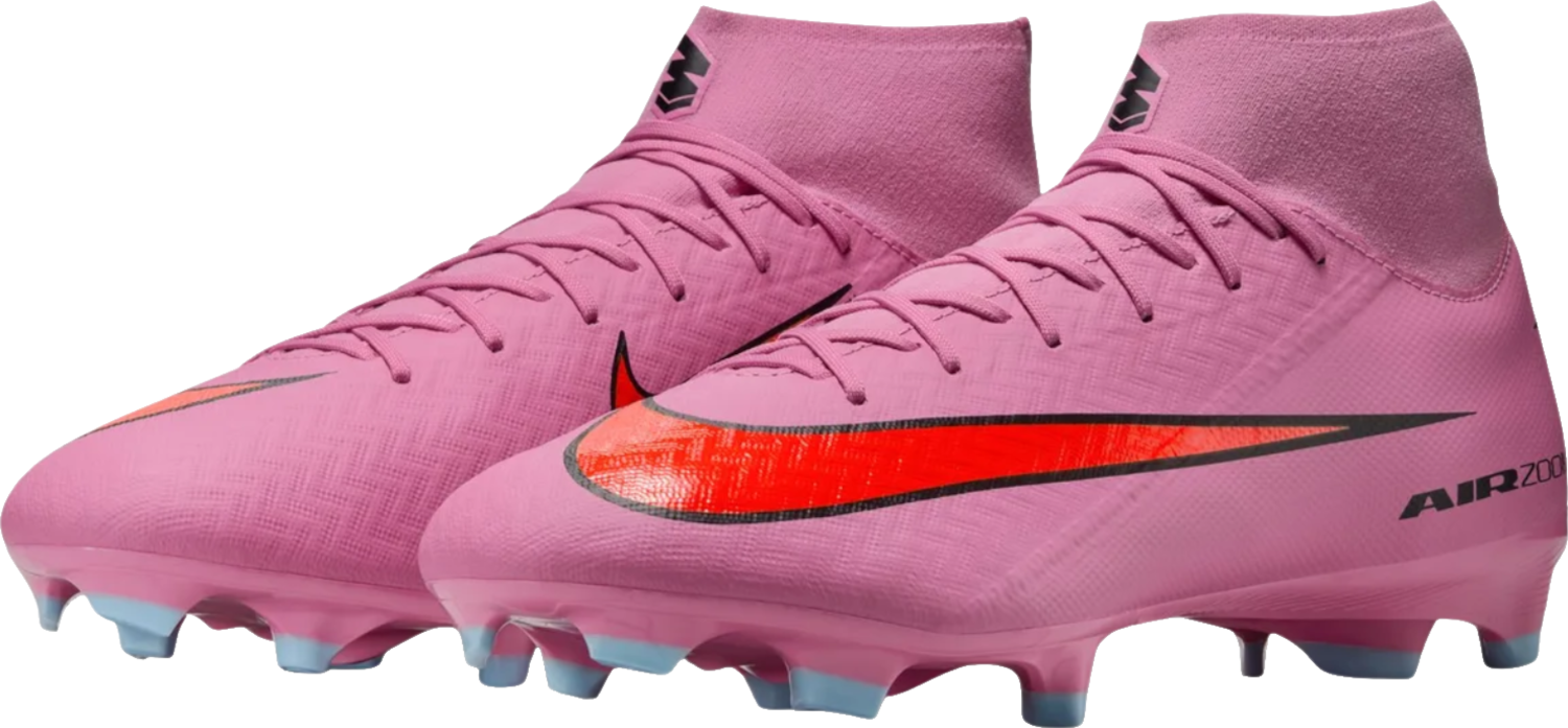 Du willst mehr Tempo und volle Kontrolle. Mit dem Nike "ZM SUPERFLY 10 ACAD FG/MG" holst du dir Antrieb bei jedem Schritt. In der Ferse arbeitet das Air Zoom Element und gibt dir spürbare Energie für Sprints und Richtungswechsel. So bestimmst du das Spiel vom Anpfiff bis zur Schlussminute. Das Obermaterial aus NikeSkin besitzt feine Chevron Strukturen. Dadurch klebt der Ball förmlich am Fuß und du spürst ein Fußballgefühl nah am Barfußlauf. Das wellenförmige Traktionsmuster setzt auf kaskadierende Stollen, die die Auflage über dem Air Zoom Element vergrößern und dir zuverlässigen Grip geben. Überarbeitete Chevron Stollen und Blade Stollen erleichtern schnelle Cuts und saubere Stopps. Das neue Strickmaterial passt sich deinem Fuß an, bleibt flexibel und stützt dort, wo du es brauchst. Der Dynamic Fit Schuhkragen umschließt den Knöchel weich und sicher. So sitzt der Schuh eng, bequem und stabil, damit du dich voll auf Ball und Raum konzentrierst.