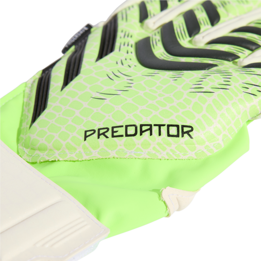 Mit diesen adidas "Predator Match Fingersave" Torwarthandschuhen für Kinder und Teens hältst du deinen Kasten sauber. Die weiche Soft Grip Pro Latex-Polsterung an der Handfläche und die stabilisierenden aber gleichzeitig auch flexiblen Fingersave Elemente an den Fingern sorgen dafür, dass du für alles bereit bist. Die halb umlaufende Handgelenksbandage garantiert eine bequeme Passform und einen sicheren Sitz, damit du zwischen den Pfosten glänzen kannst.