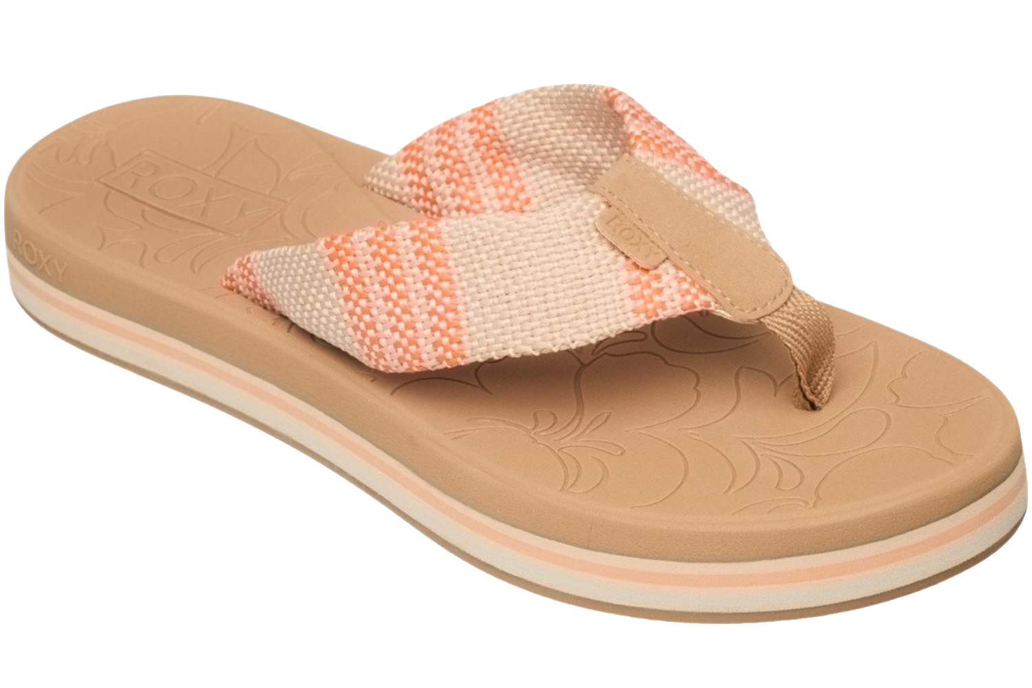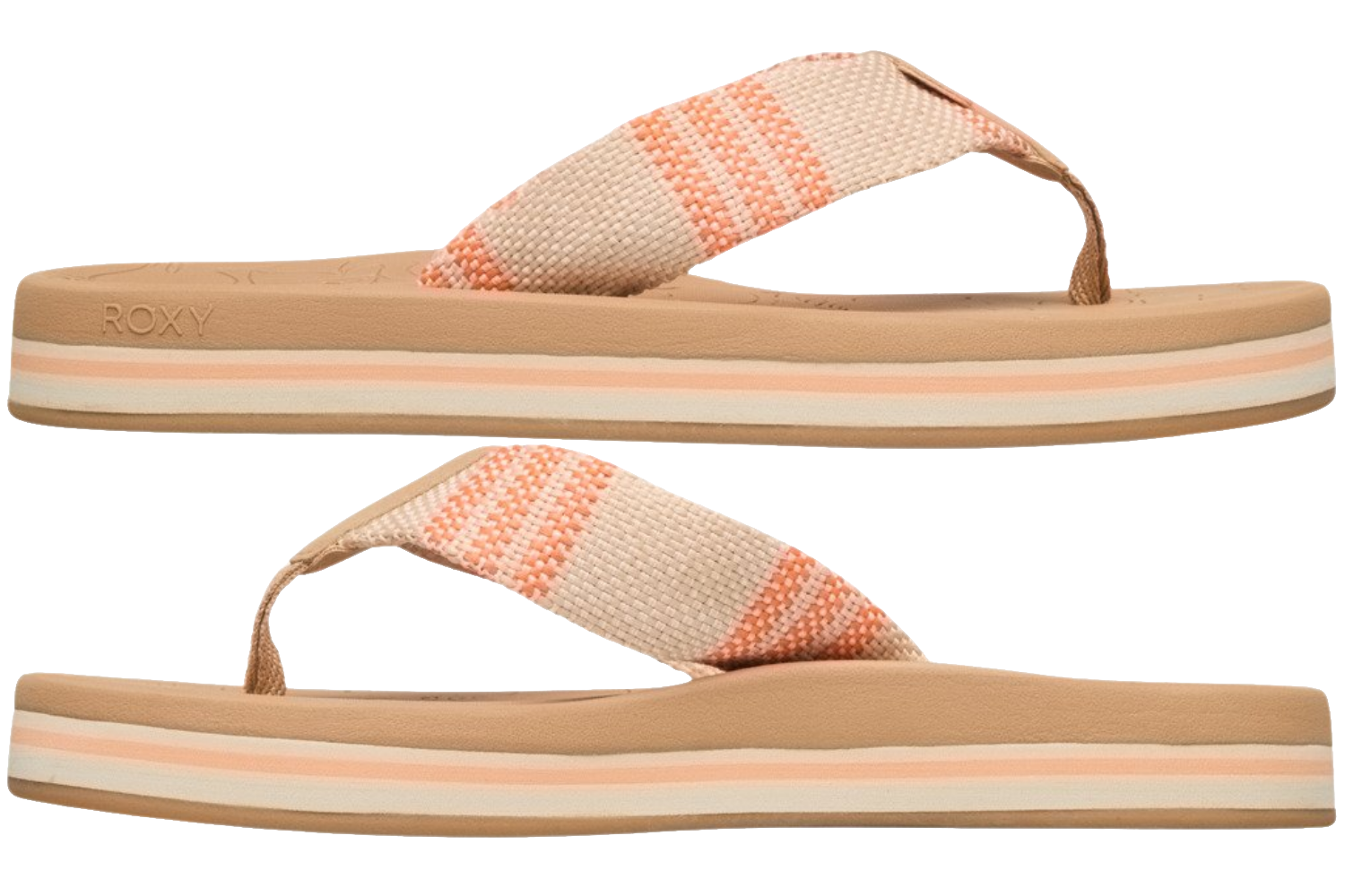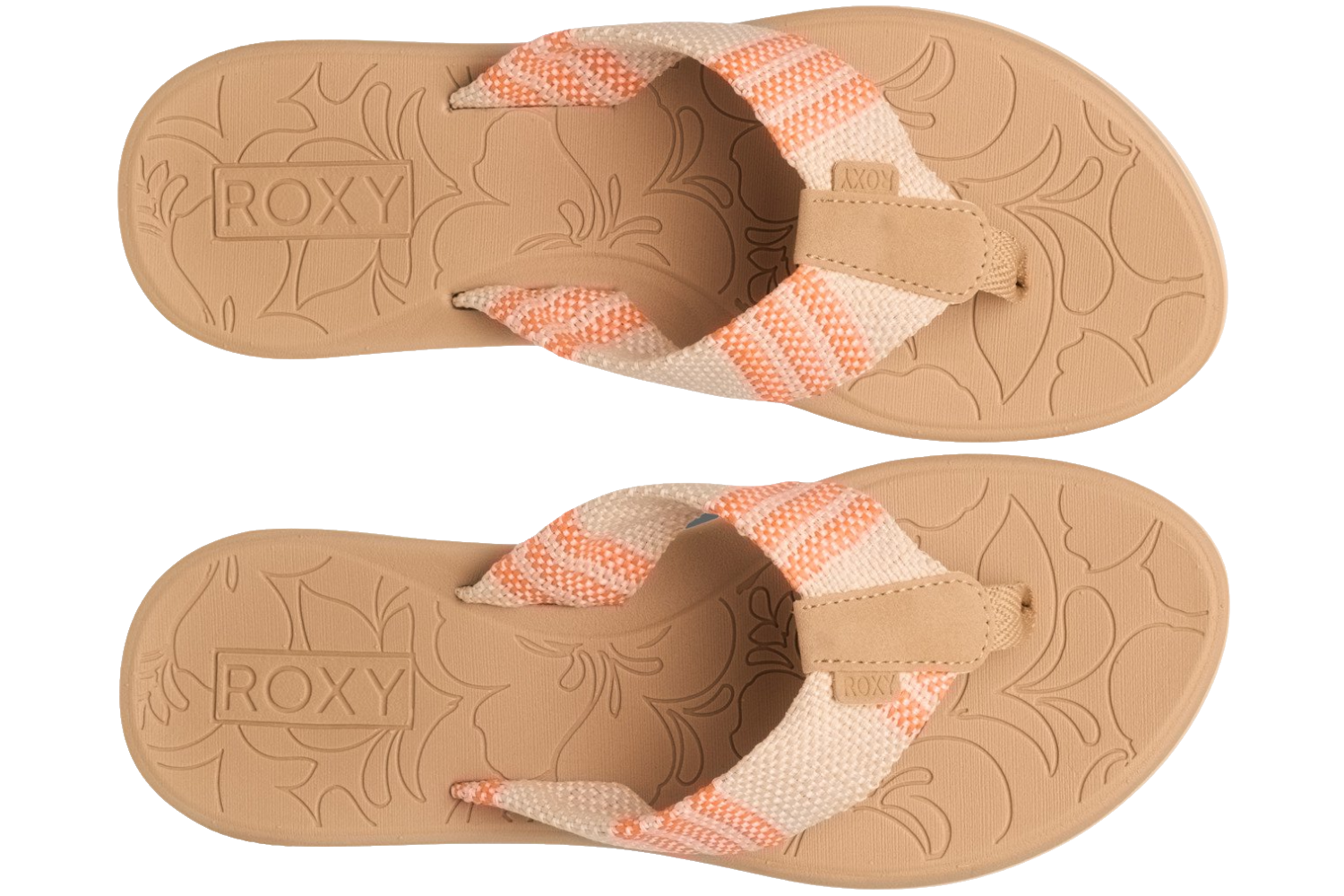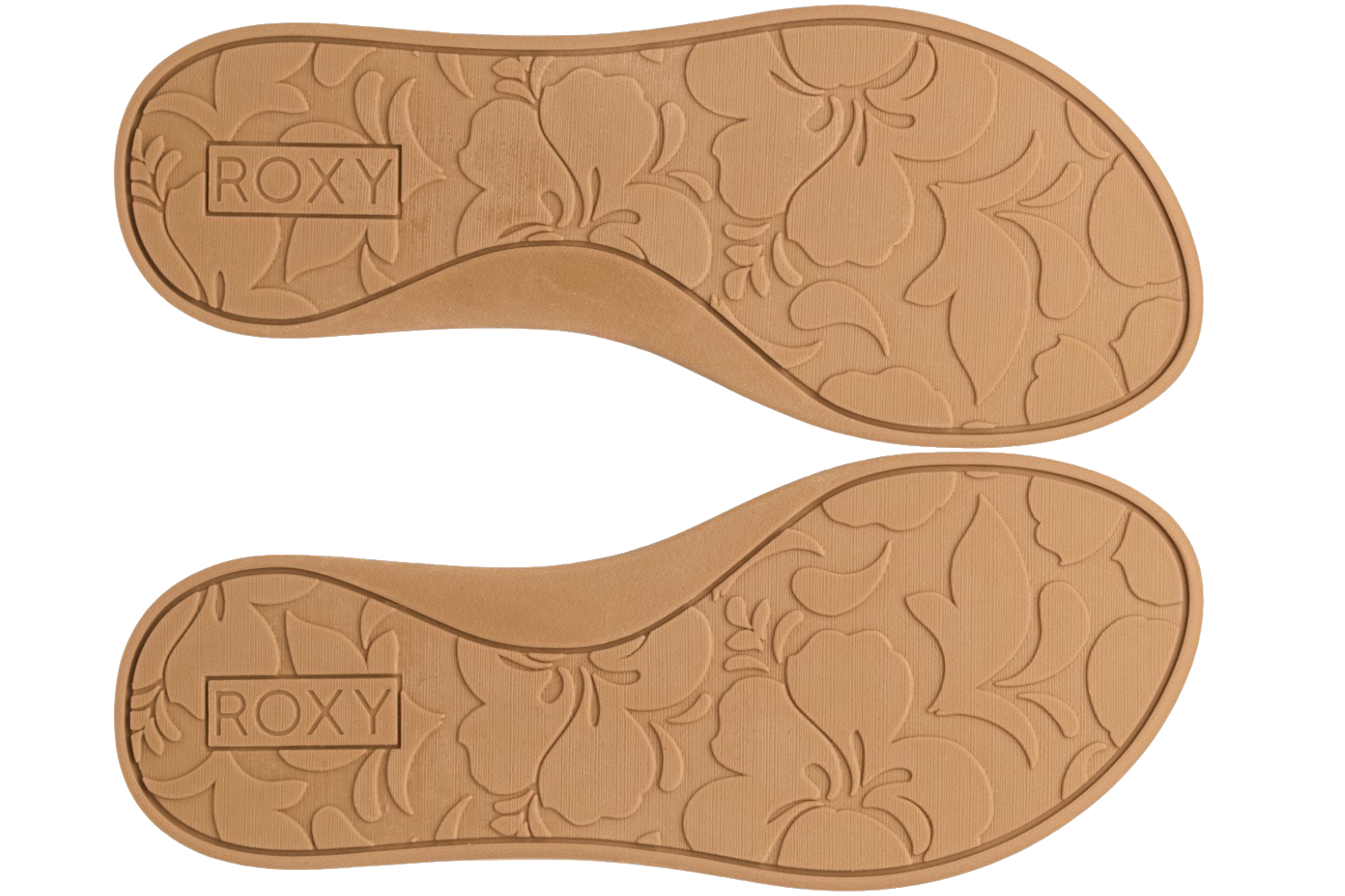 Für die Stoßdämpfung ist eine mehrfarbige EVA-Zwischensohle integriert. Die profilierte Außensohle besteht aus einer Mischung aus thermoplastischem Gummi und Polyester und ist mit einem ROXY-Druck versehen. Optische Details wie der markante Print und die mehrfarbige Sohlengestaltung runden das Design ab. Durch den starken Fokus auf anatomische Unterstützung grenzen sich diese Sandalen deutlich von flachen und unstrukturierten Badeschuhen ab. Profitiere von einer funktionalen Sohlenarchitektur für maximalen Komfort in Ihrer Freizeit.