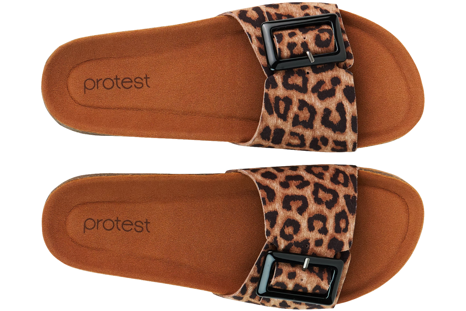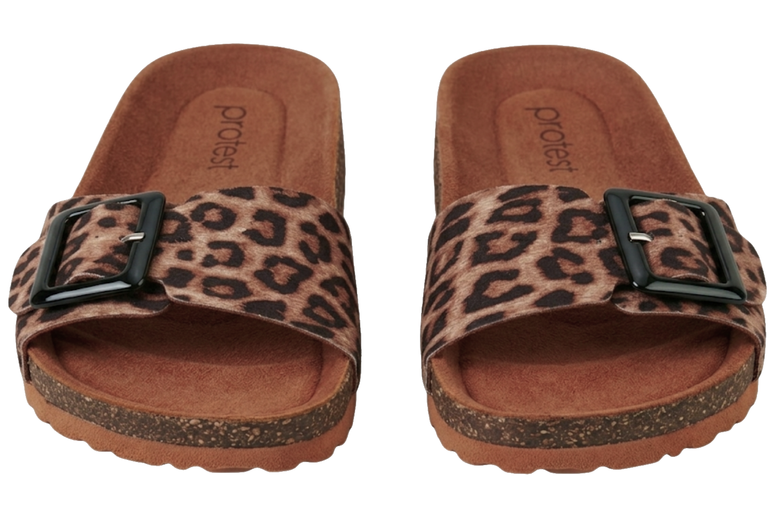 Eine Einlegesohle aus Kork bietet Unterstützung sowie Komfort beim Gehen, während das Hauptmaterial aus EVA besteht. Optisch wird das Design durch ein Leopardendruck Muster abgerundet. Die Schuhe vereinen Protest-Freiheit mit einem mittleren Fersentyp. Kombiniere diesen Schuh mit deinem Strandoutfit und genieße warme Sommertage mit optimalem Halt.