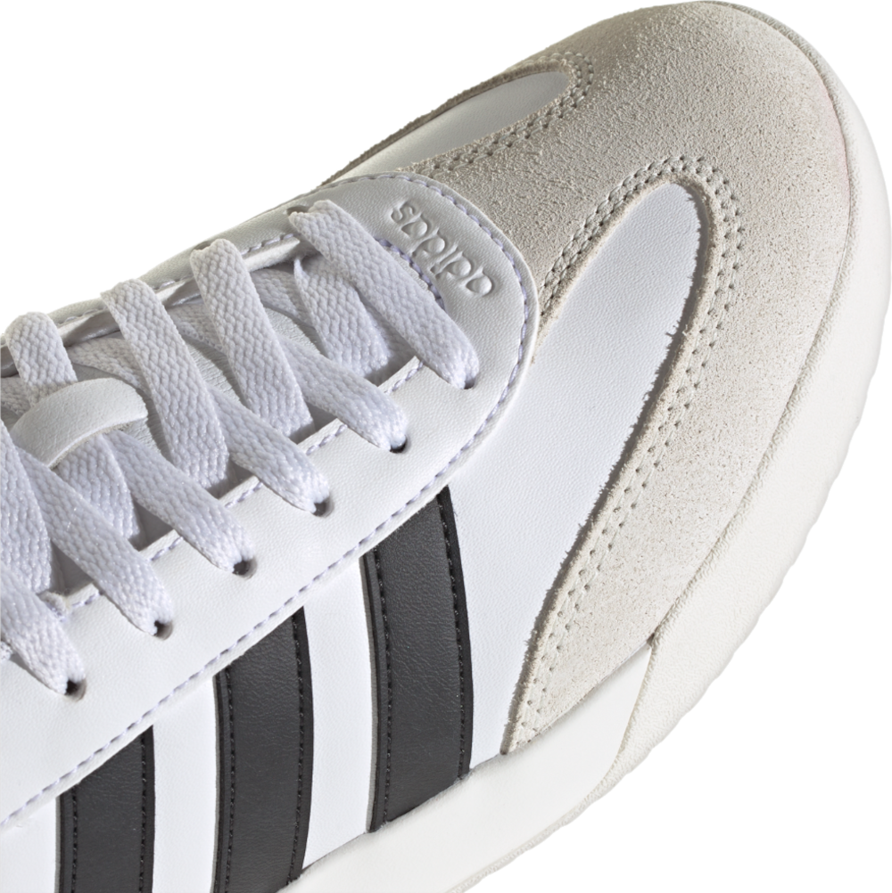 Adidas "VL COURT FC" Damen Sneaker verbindet die klare Linie klassischer Courts mit moderner Fußballästhetik. Das Obermaterial aus Synthetik und Leder steht für Haltbarkeit und eine elegante Anmutung, das Textilfutter fühlt sich vom ersten Schritt an weich an. Die reguläre Passform liegt natürlich am Fuß, der Schnürverschluss lässt sich präzise anpassen, damit alles sicher sitzt, wenn du unterwegs bist. Die Gummiaußensohle gibt dir verlässlichen Halt auf glatten Böden und ermöglicht ein geschmeidiges Abrollen im Alltag. Die T förmige Zehenkappe setzt ein ikonisches Detail aus dem adidas Erbe, die seitlichen 3 Streifen und das lineare Logo an Ferse und Zunge runden den souveränen Auftritt ab. So bekommst du Stil und Komfort in einem Schuh, der lange angenehm bleibt. Im Vergleich zu einfachen Freizeit-Sneakers bietet der Materialmix mehr Struktur und eine ruhigere Innenatmosphäre, während die griffige Sohle in urbanen Situationen überzeugt. Ein Schuh für Straße, Büro und Freizeit, der jedes Outfit klar ergänzt. Jetzt kaufen und deinen Tag mit leichtem Schritt gehen.