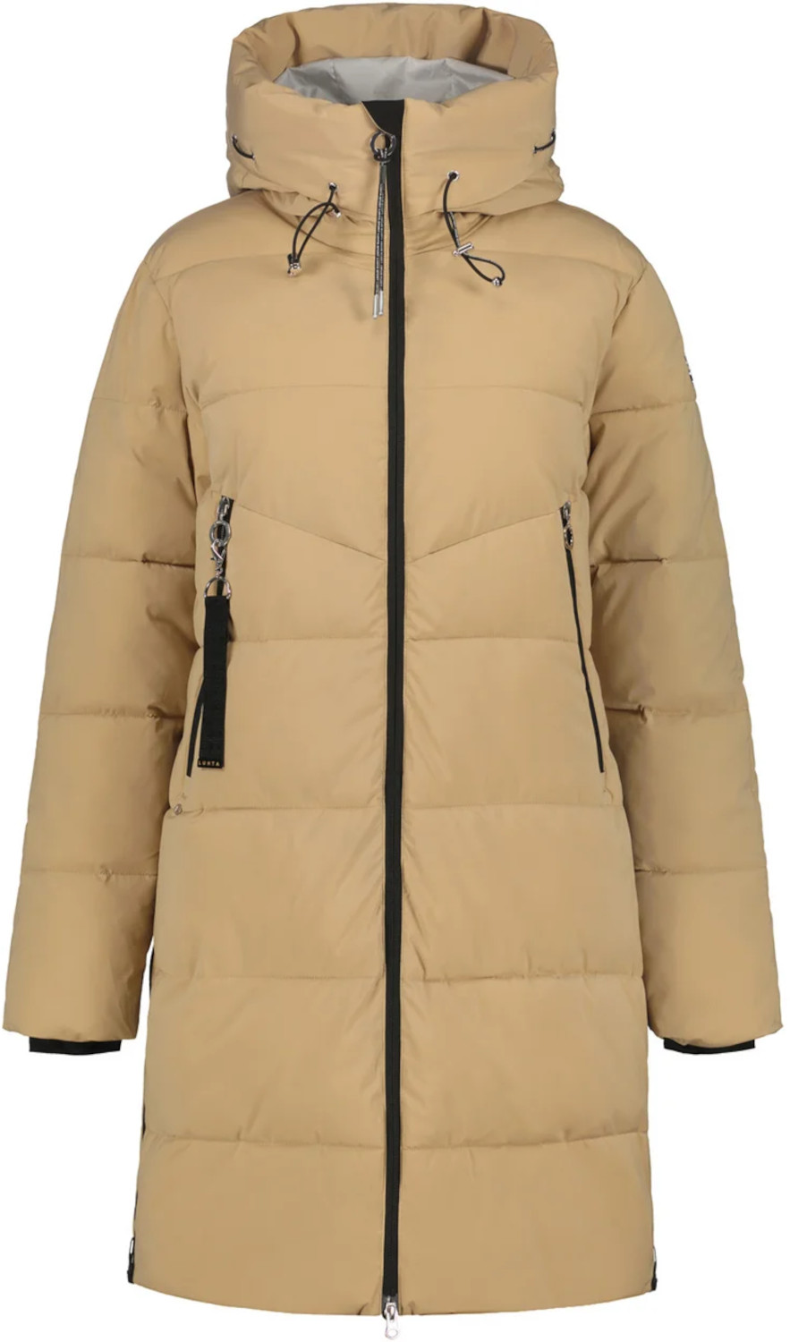 Der Luhta Damenmantel "Inkoo" überzeugt durch Funktionalität und Komfort und ist für intensive sowie entspannte Aktivitäten geeignet. Er besteht aus 4-Wege-Stretchmaterial, das volle Bewegungsfreiheit bietet, und einer Daunenimitat-Wattierung, die leicht ist und dennoch hervorragend wärmt. Das winddichte, wasserabweisend imprägnierte Material schützt zuverlässig vor Wind und Nässe, während die PFC-freie Imprägnierung umweltfreundlich ist. Praktische Details wie eine feste, zweifach regulierbare Kapuze, elastische Ärmelbündchen sowie zahlreiche Taschen, darunter gefütterte zum Händewärmen, sorgen für zusätzlichen Komfort. Mit seinem Zwei-Wege-Reißverschluss, seitlichen Reißverschlüssen und abnehmbarer Dekoration kombiniert der Mantel Stil und Funktionalität.