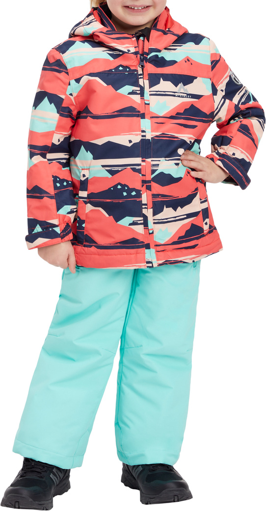 Mit dem zweiteiligen Schneeanzug "Timber II + Ray II" von McKINLEY sind Kids für jedes Abenteuer im Schnee bestens gerüstet. Verschweißte Nähte, das atmungsaktive AQUAMAX-Material und ein Schneefang an Jacke und Hose halten Wind und Nässe fern. Die Jacke punktet mit wärmenden Fleecefutter im Kragen, einer abnehmbaren Kapuze und reflektierenden Details, während die Skihose mit einem festen Latz, Gürtelschlaufen und verstärkten Einsätzen an Gesäß, Beinen und Knien ausgestattet ist.