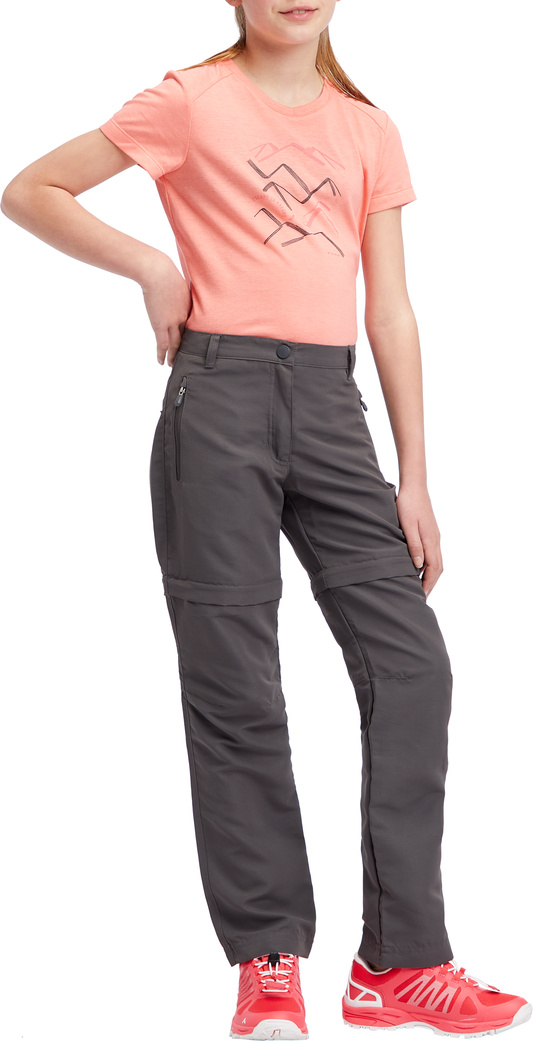 Die MCKINLEY Alana II Wanderhose für Mädchen ist die perfekte Begleitung für abenteuerlustige junge Entdeckerinnen! Diese Outdoor-Abzipphose wurde entwickelt, um den besten Tragekomfort und optimalen Feuchtigkeitstransport zu bieten. Das Material ist schnelltrocknend und atmungsaktiv. Und dank der Zippfunktion verwandelt sich die lange Hose im Nu zur Shorts. So kannst du flexibel auf wechselnde Bedingungen reagieren. Die Gürtelschlaufen ermöglichen eine individuelle Passform, während die Taschen mit Netzfutter für eine effektive Ventilation sorgen. Der Bund ist innen mit einem regulierbaren Gummi ausgestattet, damit die Hose immer perfekt sitzt. Zusätzlicher Stauraum findet sich in den beiden Reißverschlusstaschen.