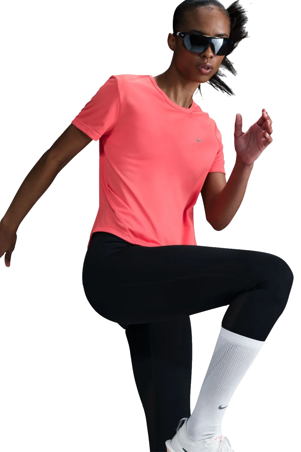 Finde deinen Rhythmus mit diesem Tempo Top. Das Nike "W NK TEMPO DF SS TOP" ist die perfekte Wahl für dein alltägliches Training und deine sportliche Freizeit. Dieses funktionale Damen T-Shirt bietet dir einen hervorragenden Mix aus Leistung und Stil für Aktivitäten wie Running oder Tennis. Die innovative Nike Dri-FIT-Technologie leitet Schweiß zuverlässig von der Haut ab. Dadurch verdunstet die Feuchtigkeit deutlich schneller und du genießt einen dauerhaft trockenen Tragekomfort. Große Mesh-Einsätze unter den Armen unterstützen die Belüftung zusätzlich und sorgen für ein angenehm kühles Körperklima an warmen Tagen. Ein entscheidender Vorteil für deine Bewegungsfreiheit ist der durchdachte Schnitt. Das Shirt ist um die Taille herum etwas enger geschnitten und verfügt über minimale Nähte. Diese clevere Konstruktion reduziert Reibung effektiv und verhindert Hautirritationen bei intensiven Bewegungen. Der abgerundete Saum bietet dir zudem bei jedem Schritt eine zuverlässige Abdeckung. Ein reflektierendes Swoosh-Logo auf der Brust erhöht deine Sichtbarkeit in der Dämmerung. Zudem handelst du nachhaltig, da das Material aus recyceltem Polyester besteht. Ergänze deine Sportgarderobe mit diesem vielseitigen Oberteil.