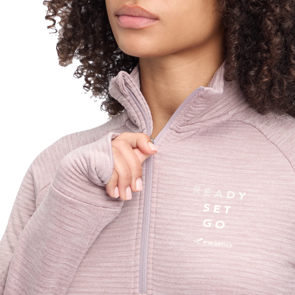 Das Longsleeve "Wilona W" aus der nachhaltigen Green Series von ENERGETICS mit halbem Reißverschluss wurde speziell für Läuferinnen entwickelt und wartet mit all den feinen Details auf, die das Laufen zum absoluten Erlebnis machen. Dieses Oberteil aus atmungsaktivem, warmem und elastischem DRY PLUS Waffel-Fleece verfügt über einen Stehkragen sowie über Daumenlöcher an den Ärmelbündchen, um Kältebrücken sicher auszuschließen. Die abgesetzte Reißverschlusstasche am Oberarm nimmt dein Smartphone und andere Utensilien auf.