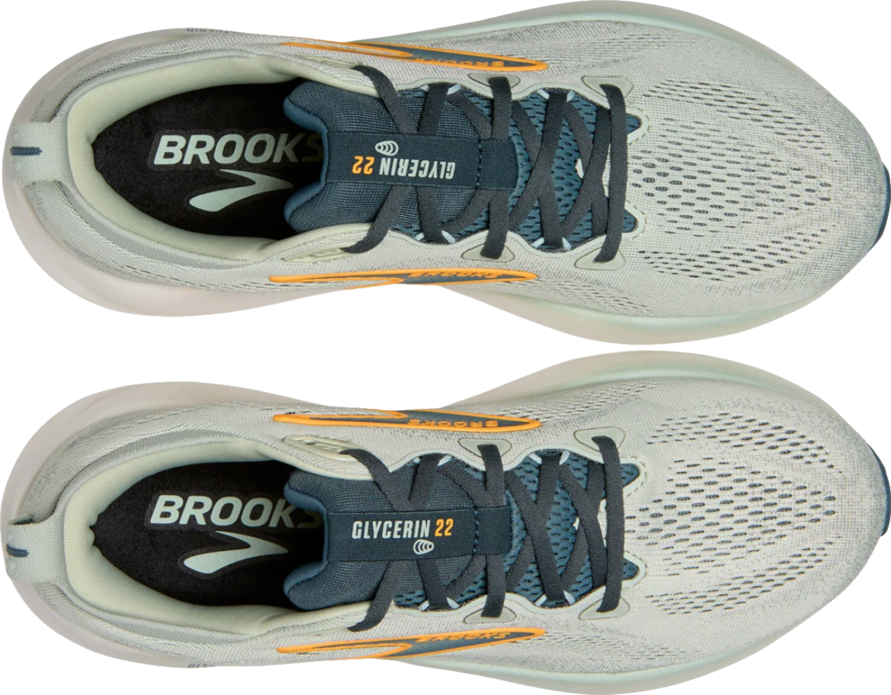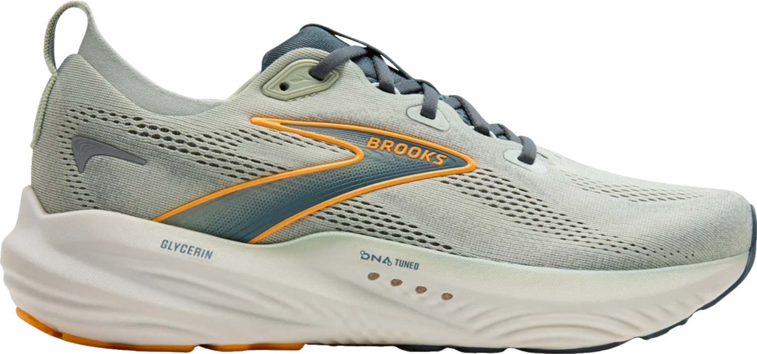 Der Brooks "Glycerin 22" Herren Laufschuh setzt neue Maßstäbe für deinen täglichen Laufkomfort. Als Komfortflaggschiff der Marke wurde dieses Modell von der Außensohle bis zum Obermaterial komplett überarbeitet. Du profitierst von der neuen Zwischensohle mit DNA Tuned-Schaum. Diese Technologie verleiht dem Schuh eine Dämpfung auf höchstem Niveau. Sie sorgt für einen sanften Fußaufsatz und einen responsiven Abdruck über den Vorfuß. Das mehrlagige Obermaterial passt sich angenehm deinen Füßen an. Im Fersen- und Mittelfußbereich sitzt der neutrale Laufschuh fast wie eine zweite Socke bequem und komfortabel. Durch die Schnürung lässt sich der Halt im Mittelfuß zusätzlich individualisieren. Dadurch sitzt du sicher im Schuh und genießt eine solide Grundstabilität. Mit seinem vielseitigen Look und dem eleganten Design begleitet dich der Schuh überallhin. Er eignet sich ideal für das tägliche Laufen sowie für Fitnessstudio-Workouts. Zudem handelst du umweltbewusst. Das Obermaterial enthält recycelte Materialien. Hol dir diesen leichten Allrounder für deine Ziele.