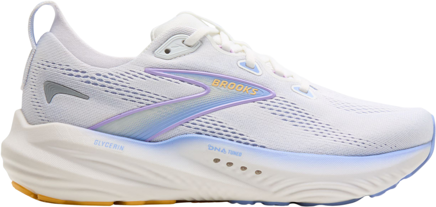 Die Brooks "Glycerin 22" Damen Laufschuhe gibt dir auf der Straße genau das Gefühl, das du dir wünschst. Vom ersten Schritt an erlebst du angenehm weiche Landungen und einen kraftvollen Abdruck. Die breite Plattform stabilisiert deinen Fuß, während optimierte Bereiche an Ferse und Vorfuß fließende Übergänge von der Ferse zu den Zehen fördern. Das neu entwickelte Obermaterial aus doppellagigem Jacquard Strick legt sich flexibel an und schafft eine anpassungsfähige Passform, die auch auf langen Distanzen überzeugt. Im Kern arbeitet stickstoffinjiziertes DNA Tuned für sanfte Landungen und spürbare Energierückgabe. Die Dual Size Zelltechnologie setzt im Fersenbereich größere Zellen für weiche Aufprallmomente ein und nutzt im Vorfußbereich kleinere Zellen für einen dynamischen Abdruck. Mit 10 mm Sprengung bleibt dein Laufstil entspannt und stabil, ideal für Alltagstraining und lange Straßenläufe. Starte jetzt mit der Brooks Glycerin 22 in deinen nächsten Long Run und erlebe Komfort, der Kilometer macht.