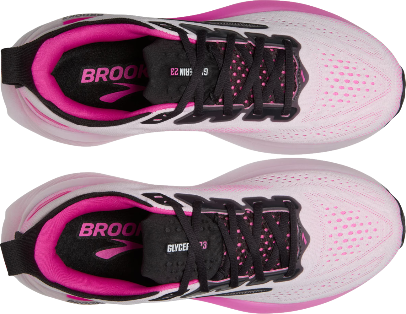 Der Brooks "Glycerin 23" Damen Laufschuh bietet dir ein luxuriöses Lauferlebnis für deine täglichen Einheiten und Long Runs auf der Straße. Du profitierst von der innovativen DNA TUNED Mittelsohlentechnologie. Diese stickstoff-injizierte Dämpfung kombiniert nahtlos große Zellen im Fersenbereich für weiche Abrollbewegungen mit kleinen Zellen im Vorfußbereich für ein agiles Abdrücken der Zehen. Das neue Obermaterial aus modernem Triple Jacquard Warp Knit sorgt für verbesserten Tragekomfort. Es gewährleistet eine weiche und anpassungsfähige Passform, die zudem sehr atmungsaktiv ist.