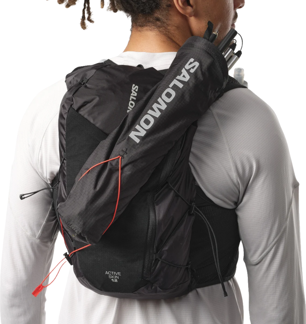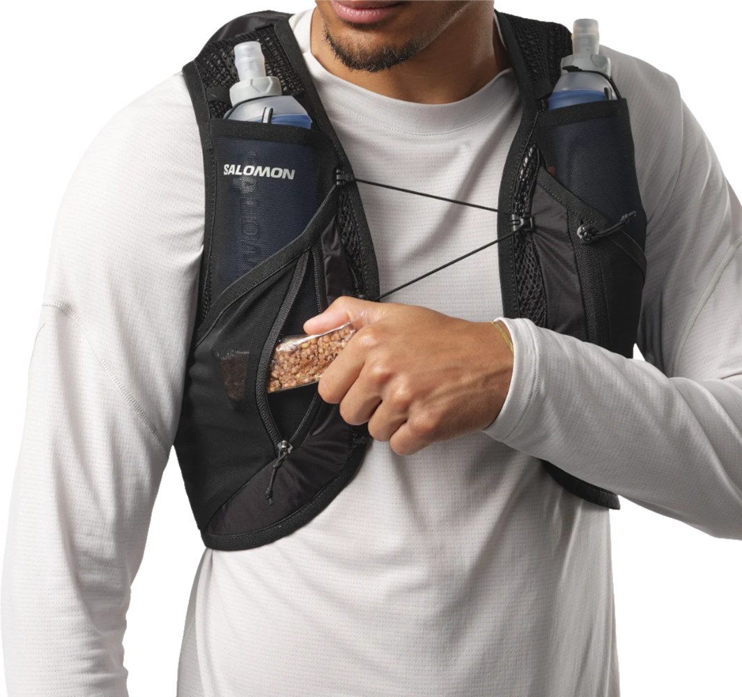Planst du dein nächstes Ultra-Trail-Abenteuer und benötigst viel Stauraum ohne Kompromisse beim Komfort? Die SALOMON "ACTIVE SKIN 12" Unisex Laufweste mit Flasks ist dein idealer Partner für lange Distanzen und anspruchsvolle Läufe. Du profitierst von der bewährten SensiFit™ Konstruktion mit weichen und atmungsaktiven Materialien. Diese passt sich deinem Körper präzise an und sorgt für einen stabilen Sitz. Wackeln wird dadurch effektiv verhindert und deine Bewegungsfreiheit bleibt uneingeschränkt erhalten. Das Volumen von 12 l bietet dir ausreichend Platz für deine gesamte Ausrüstung. In den zahlreichen Taschen organisierst du alles effizient. Dazu gehören zwei Brusttaschen für den Schnellzugriff auf die mitgelieferten 500 ml Soft Flasks sowie diverse Reißverschluss- und Stretch Fächer vorne und hinten. Kompressionsgurte sichern das Gewicht am Rücken. Ein Fach für eine 1,5 l Trinkblase ist ebenfalls integriert. Deine Stöcke kannst du dank der Kompatibilität mit dem Custom Quiver einfach befestigen. Hol dir diese funktionale Weste für deine ambitionierten Ziele.