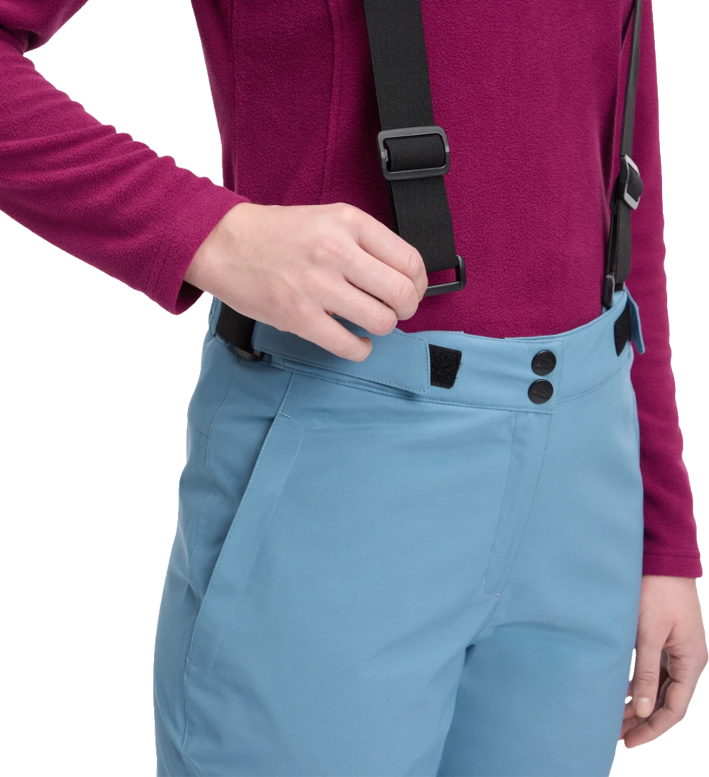 Die McKINLEY Skihose "Dina II" sitzt einfach perfekt. Dank Zwei-Wege-Stretch und Slim Fit Mid Rise-Passform ist sie superbequem und passt sich jeder deiner Bewegungen an. Die hochwertige wie nachhaltige SORONA®-Wattierung und AQUAMAX-Technologie mit 10.000 mm Wassersäule sowie komplett verschweißte Nähte schützen dich optimal vor Kälte, Nässe und Wind. Die atmungsaktive Membran sorgt für ein angenehmes Körperklima. Die Skihose aus recyceltem Polyester hat einiges zu bieten: praktische Träger, seitliche Weitenverstellung und zwei Reißverschlusstaschen für Wertsachen. Der integrierte Schneefang hält zuverlässig Schnee und Kälte draußen, sodass du dich voll und ganz aufs Skifahren konzentrieren kannst.