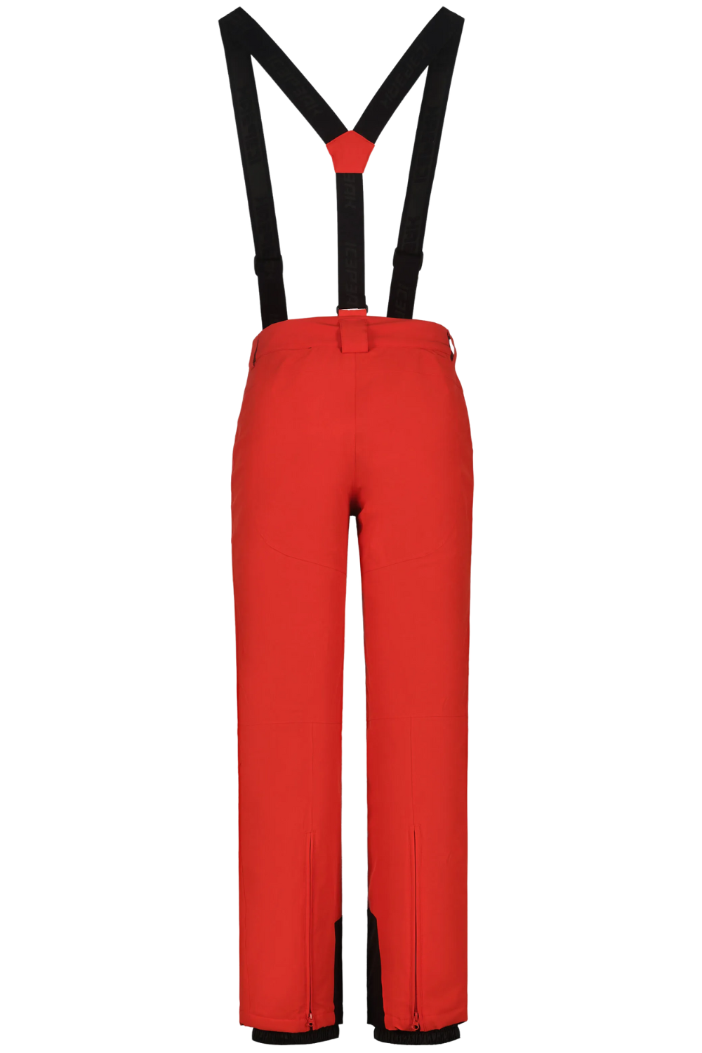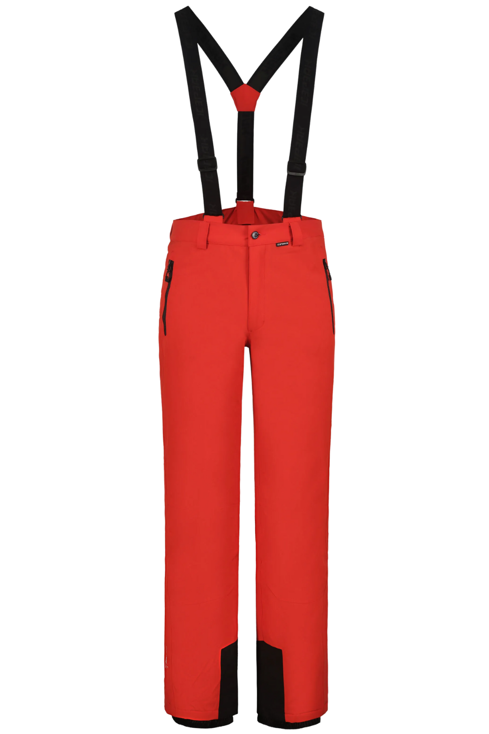 Die ICEPEAK "FREIBERG" wattierte Herren Skihose verbindet eine schmale Passform mit trockenem, warmem Tragegefühl und voller Bewegungsfreiheit. Das 4-Wege-Stretch Material dehnt in alle Richtungen, damit jeder Schwung sauber sitzt. Alle Nähte sind verschweißt, die Konstruktion aus zwei Lagen Material verbindet eine wasserdichte Membran mit funktionellem Oberstoff. So bleibt die Hose absolut wasserdicht und zugleich atmungsaktiv. Eine leichte Fütterung liefert angenehme Wärme ohne aufzutragen. Vorgeformte Kniebereiche unterstützen dynamische Bewegungen, verstärkte Beinabschlüsse und Hosenbeinabschlüsse mit Reißverschluss erhöhen Alltagstauglichkeit und Handling an Schuh und Bindung. Feste Schneefänge halten Schnee draußen, der extrahohe Bund schützt den Rücken, abnehmbare und regulierbare Träger sorgen für sicheren Sitz. Die wasserabweisende Imprägnierung und das winddichte Material runden den Schutz ab. Dieses Produkt aus der Reihe A.W.S. EXTREME wurde für aktive Ansprüche entwickelt und setzt auf schützende Materialien und strukturierte Details für Funktion bei jedem Wetter. Starte jetzt mit der ICEPEAK FREIBERG in saubere Schwünge und langen Komfort auf der Piste.