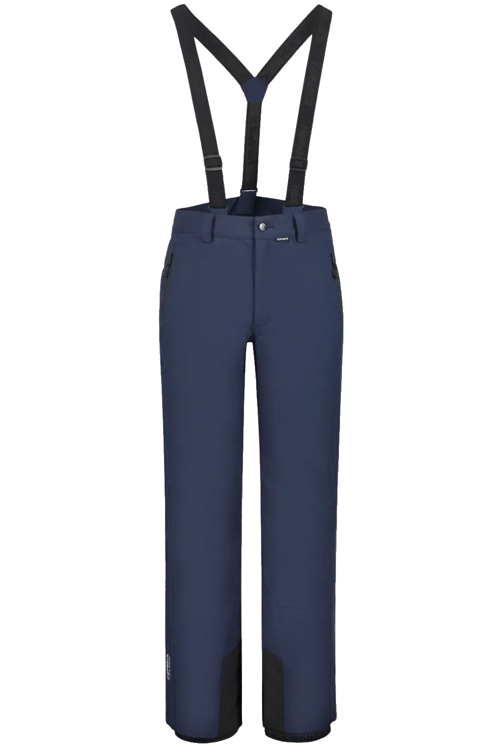 Die ICEPEAK "FREIBERG" wattierte Herren Skihose verbindet eine schmale Passform mit trockenem, warmem Tragegefühl und voller Bewegungsfreiheit. Das 4-Wege-Stretch Material dehnt in alle Richtungen, damit jeder Schwung sauber sitzt. Alle Nähte sind verschweißt, die Konstruktion aus zwei Lagen Material verbindet eine wasserdichte Membran mit funktionellem Oberstoff. So bleibt die Hose absolut wasserdicht und zugleich atmungsaktiv. Eine leichte Fütterung liefert angenehme Wärme ohne aufzutragen. Vorgeformte Kniebereiche unterstützen dynamische Bewegungen, verstärkte Beinabschlüsse und Hosenbeinabschlüsse mit Reißverschluss erhöhen Alltagstauglichkeit und Handling an Schuh und Bindung. Feste Schneefänge halten Schnee draußen, der extrahohe Bund schützt den Rücken, abnehmbare und regulierbare Träger sorgen für sicheren Sitz. Die wasserabweisende Imprägnierung und das winddichte Material runden den Schutz ab. Dieses Produkt aus der Reihe A.W.S. EXTREME wurde für aktive Ansprüche entwickelt und setzt auf schützende Materialien und strukturierte Details für Funktion bei jedem Wetter. Starte jetzt mit der ICEPEAK FREIBERG in saubere Schwünge und langen Komfort auf der Piste.