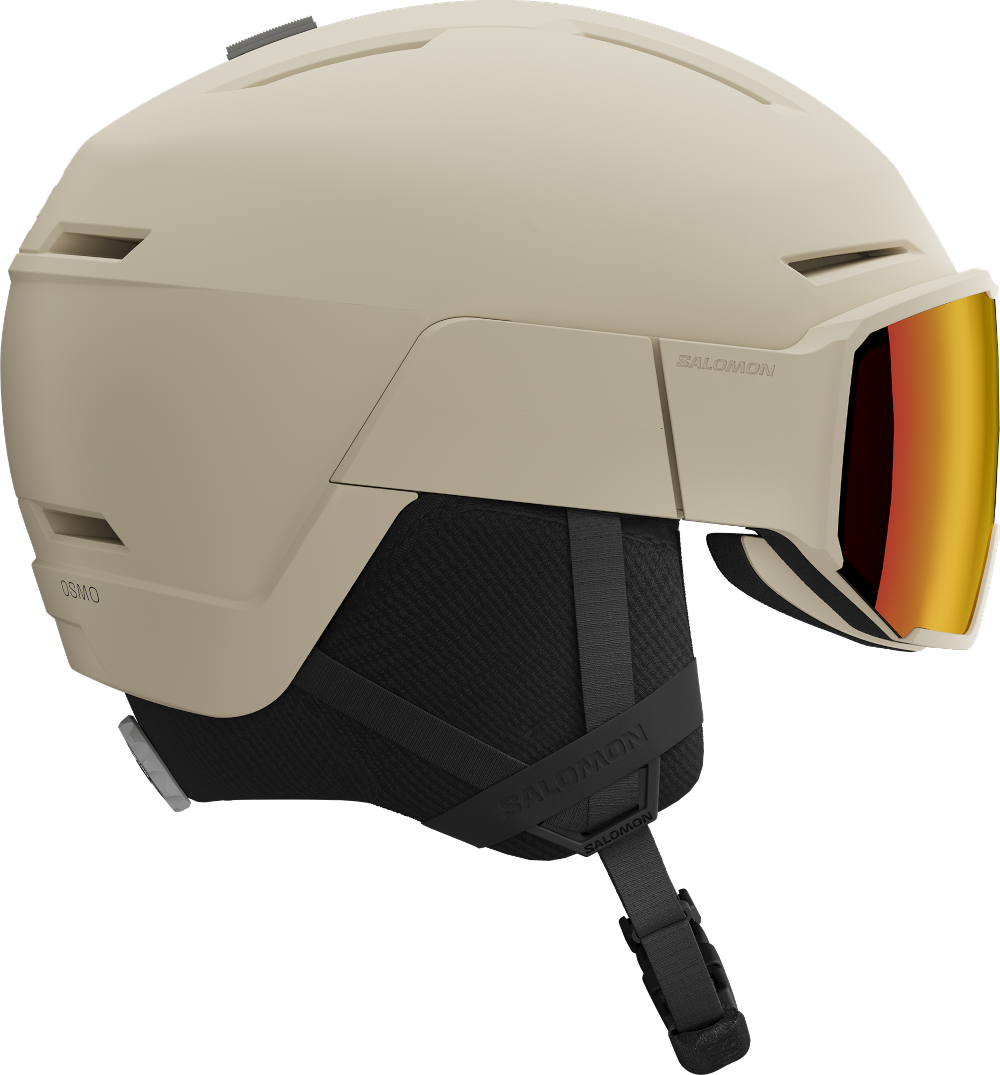Der Salomon "OSMO SIGMA" Skihelm mit Visier ist ein Visierhelm mit niedrigem Profil und wird zum Teil aus recycelten Materialien gefertigt. Die SIGMA™ Scheibe verstärkt Kontraste, die Multilagen Beschichtung rundet die Optik ab und die hohe Belüftung hält dein Kopfklima angenehm. Die In Mold Konstruktion verbindet eine leichte PC Schale mit einer EPS Innenschale für Schutz und Komfort. Mit Custom Dial V stellst du den Sitz schnell, einfach und nun auch vertikal ein, während MaxFit Konstruktion mit V förmigen Ohrenbereichen sofortigen Halt bietet. 3D Ohrenpads erhöhen den Komfort, das Wechselscheiben System macht dich flexibel, die Kompatibilität mit Sehbrille sorgt für entspanntes Tragen mit Korrektionsbrille. Die aktive Belüftung und das Airflow Konzept regulieren Luftstrom und Wärmeableitung. EPS4D maximiert die Energieaufnahme bei schrägen und vertikalen Aufprallkräften. Der Innenliner ist abnehmbar und waschbar. Der Lieferumfang umfasst Visier Reisebeutel und Helmtasche. Wetterfokus: teils wolkig, Kategorie 2 bei einer Lichtdurchlässigkeit VLT 23 %.