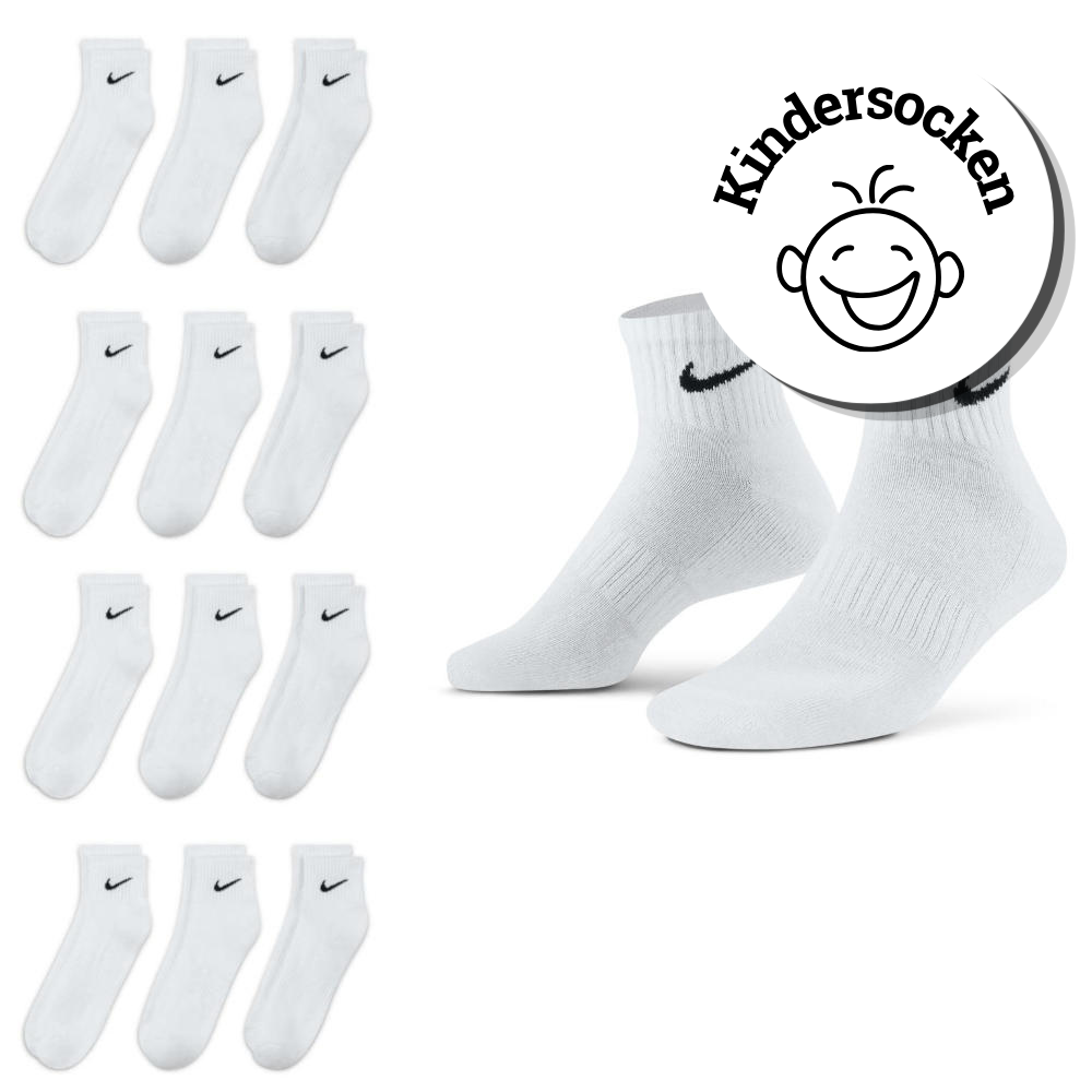 12 Paar Nike Everyday Cotton Cushioned Ankle, Kinder Quarter Socken, SX6912, weiß